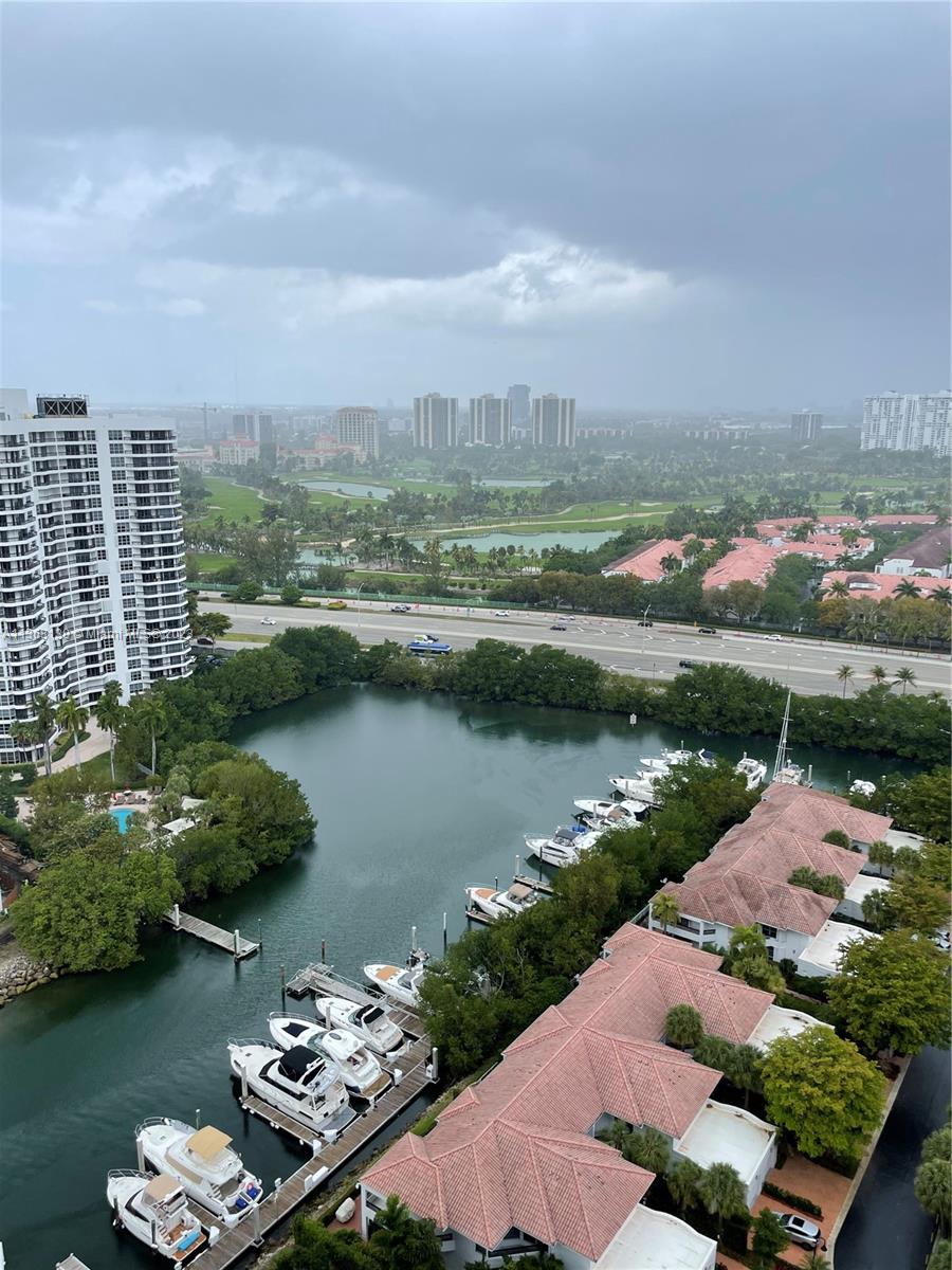 Great Intracoastal and golf views from the 26th floor. MOVE IN READY. Split floor plan bedroom. New stainless steel appliances, oven with an incorporated air fryer, wine fridge, quartz countertops, smooth ceilings, LED lighting throughout the entire apartment. Bathrooms has been renovated with top-of-the-line vanities and marble floors. Washer and dryer inside the apartment. Same floor storage. Heated pool next to the canal, jacuzzi, sauna, clubhouse, library/card room, tennis courts, pickleball, playground, dog park. Marina access available, an Italian restaurant, gym and much more just a few steps away.