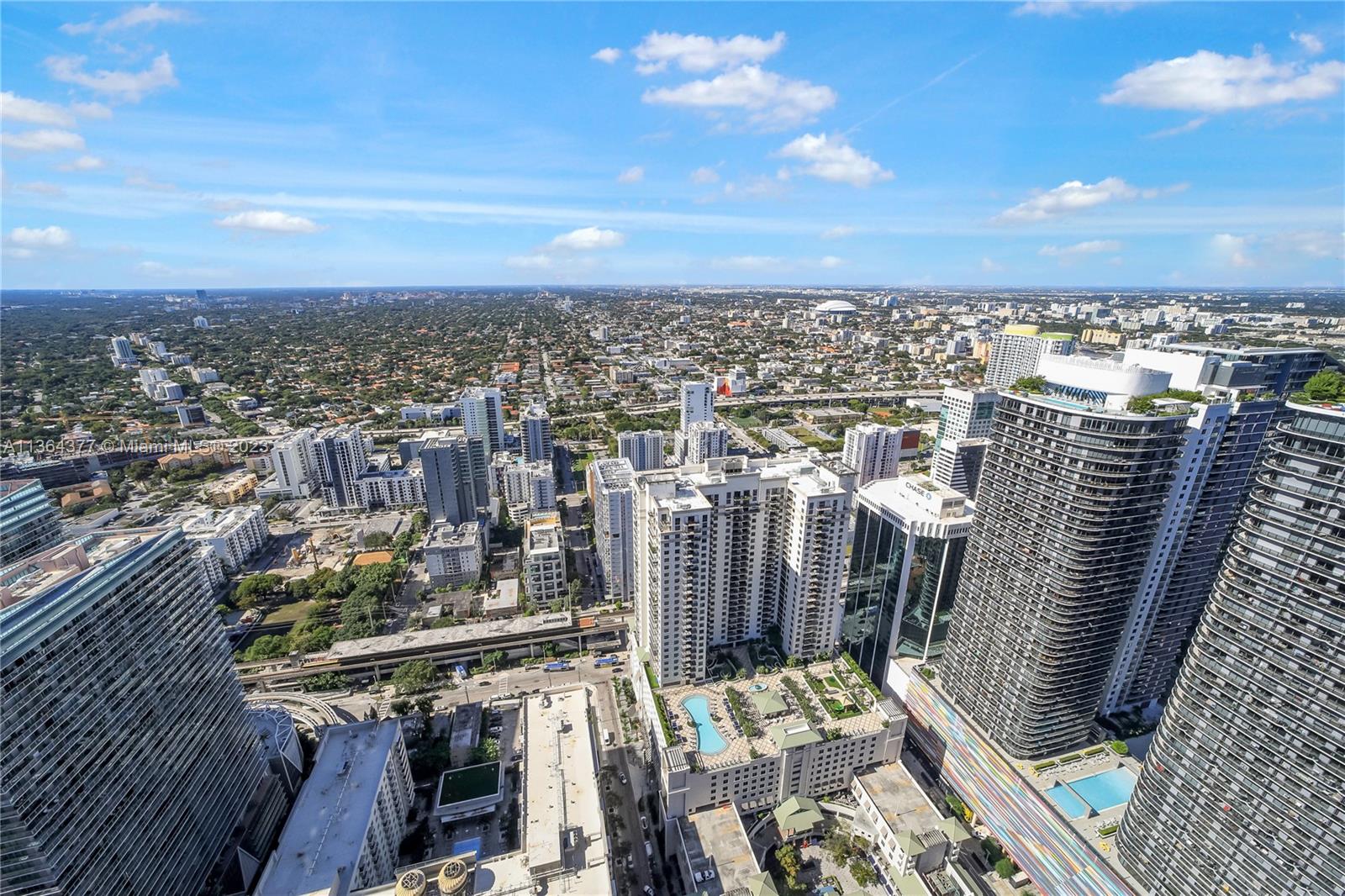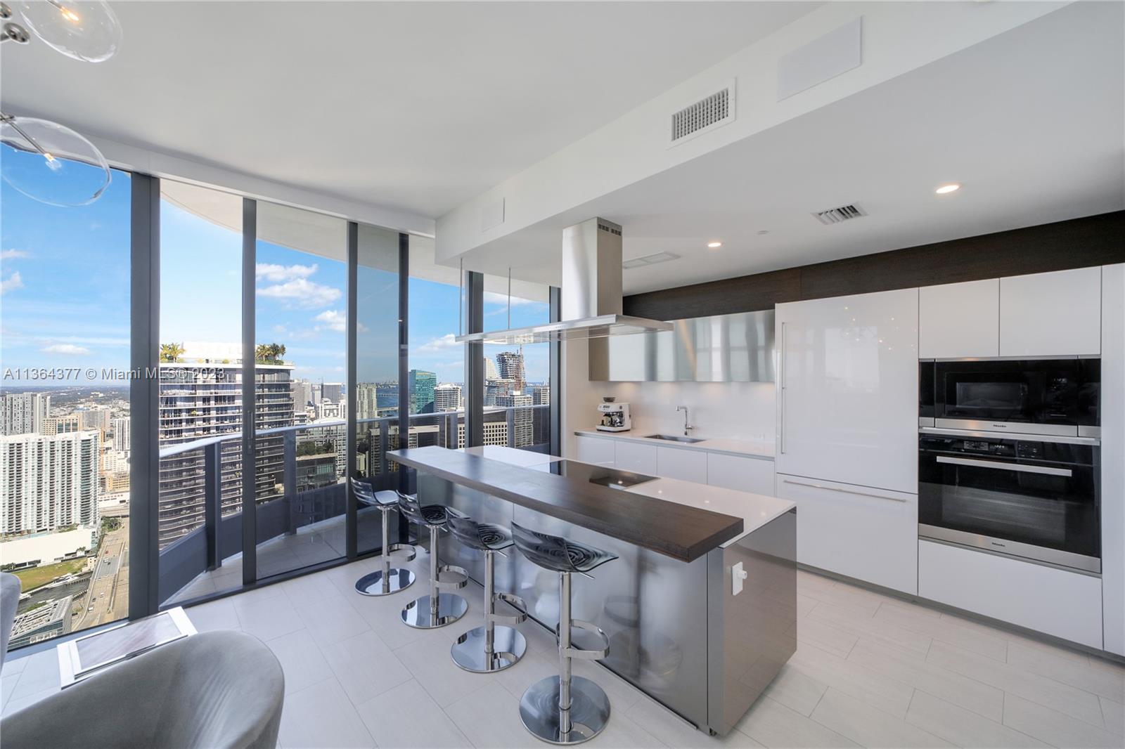 Enjoy breathtaking sophistication in this superb Brickell Flatiron 60th FL penthouse, fully furnished 1912SF (Per developper)! Soaring above the Miami skyline, this unit spares no expense with its 10 feet ceilings, custom Snaidero kitchen & professional grade Miele appliances, premium Travertine flooring in living areas and Italian marble flooring in bathrooms, exquisite custom designed closet cabinetry. Over $200k+ spent in upgraded kitchen, automation electronic (lights, sound system), Shades/Blackouts.... Elliptical wraparound balconies open up to dramatic panoramic bay & skyline views. Indisputably the most luxurious building in Brickell, one of Miami's hottest area, Flatiron's acclaimed amenities include 1st-class wellness and recreational facilities on the top floor:Pool, Spa, gym