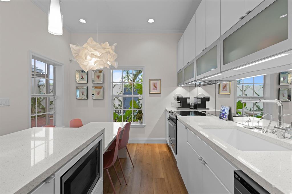 Stunning 3BR/2BA villa located in the award winning community of Charleston Place. Great central Boca location with all A rated schools. This unit has been fully updated inside including impact windows. High ceilings with new hardwood floors, new guest room shower, landscaping, sprinkler system and freshly painted. Other recent updates include kitchen and primary bath. Oversized primary bedroom with sitting area or room for a desk. Covered screened patio and private courtyard in back. Community pool is located across the street. Can rent right away and no trucks allowed. Truly a beautiful unit!