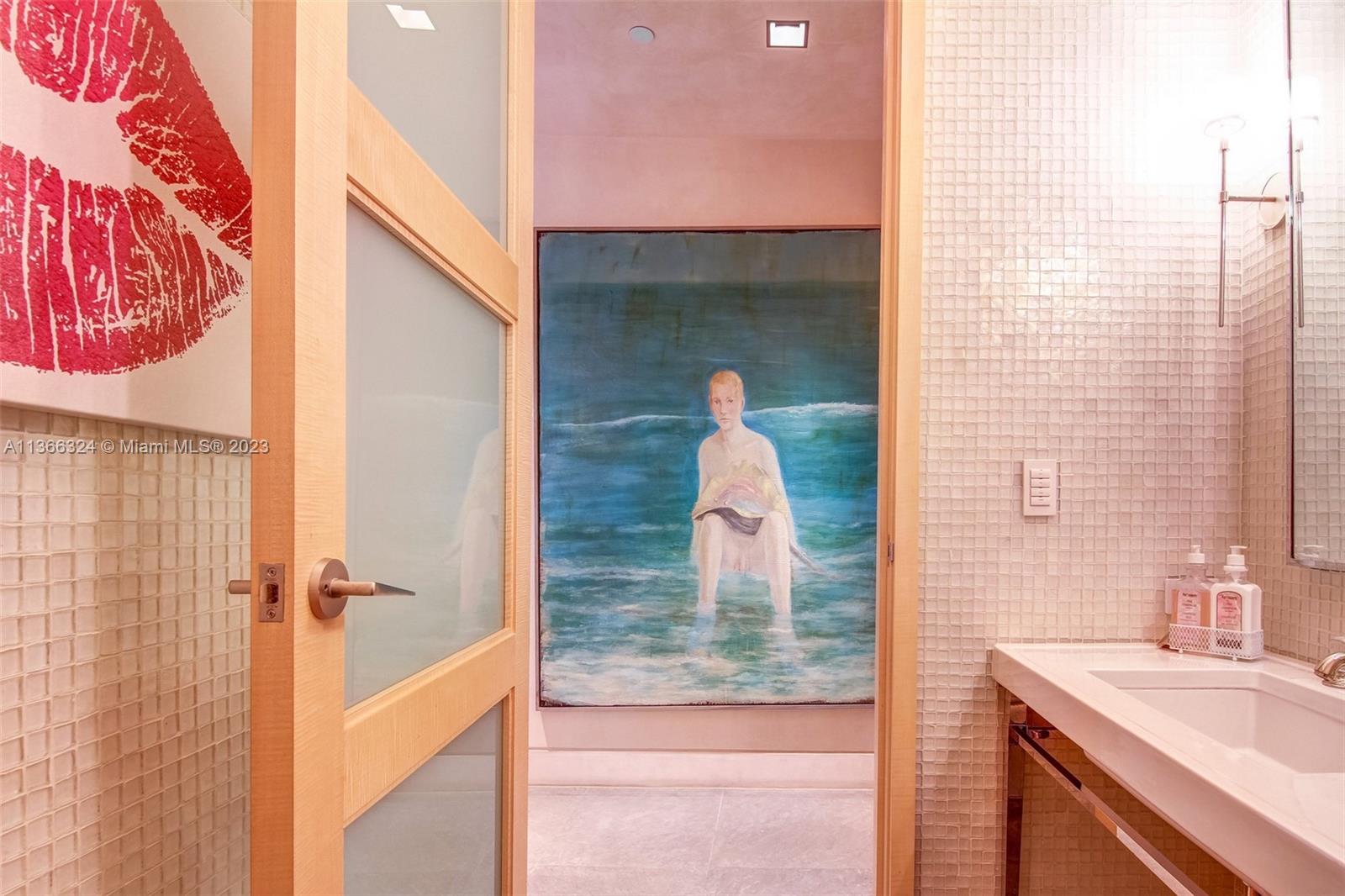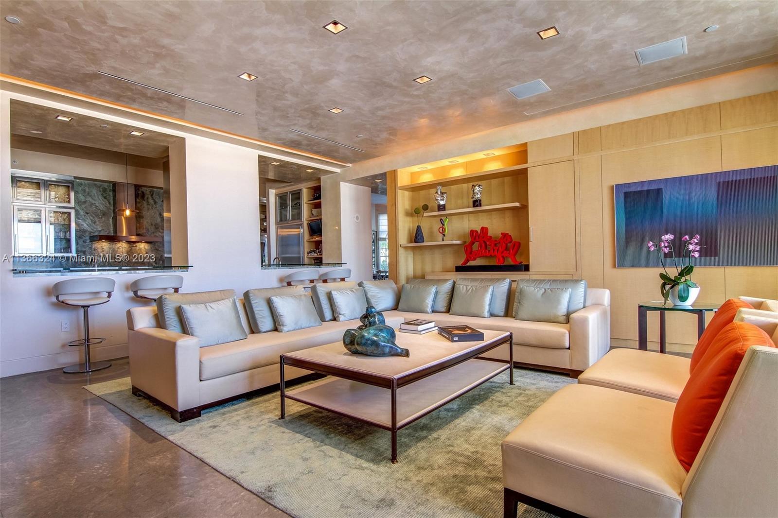 Coveted large 4BR ground floor unit in Palazzo Del Mare! Boasting ultra luxurious contemp finishes & decor in serene neutral colors. Soaring ceilings, MSTR suite w/cozy library/den & sep his/hers MSTR BA & PVTE TER. Ample brs w/en-suite BA, serene grey limestone flrs. Natural stone throughout, chandeliers & fixtures by Waterworks. Includes 3 GAR parking spcs, A/C STGE & one golf cart. Expansive 4000+/-SF TER w/summer KIT perfect for entertaining. Breathtaking SOBE views. Discrepancy between MLS and tax rolls the correct total 4,861 SF(as per floor plan)