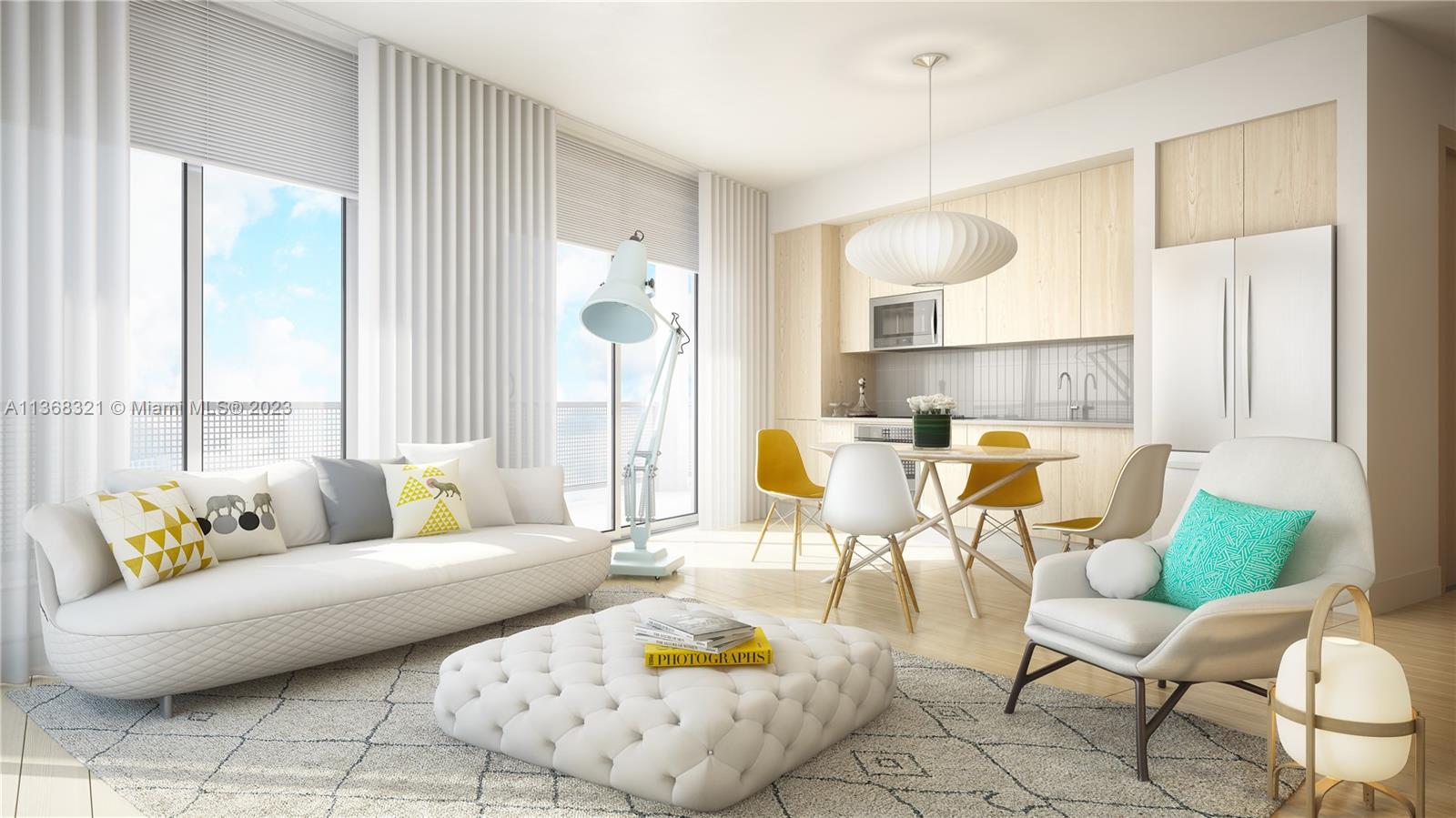 Envision yourself in a scale tower designed with unbelievable views in an oasis of amenities and 24/7 concierge ready to accommodate your every need. This unit feature’s premium contemporary Italian cabinetry with quartz countertops and backsplash. Whirlpool stainless steel appliances, including counter-depth, French-door refrigerator, cooktop, oven, microwave and dishwasher. Imported porcelain tile floors. All the bedrooms in this floor plan have access to a spacious terrace. Floor-to-ceiling impact[1]resistant, windows and sliding glass doors. 9’ ceilings. Spacious walk-in closets and prewired for high-speed communication.