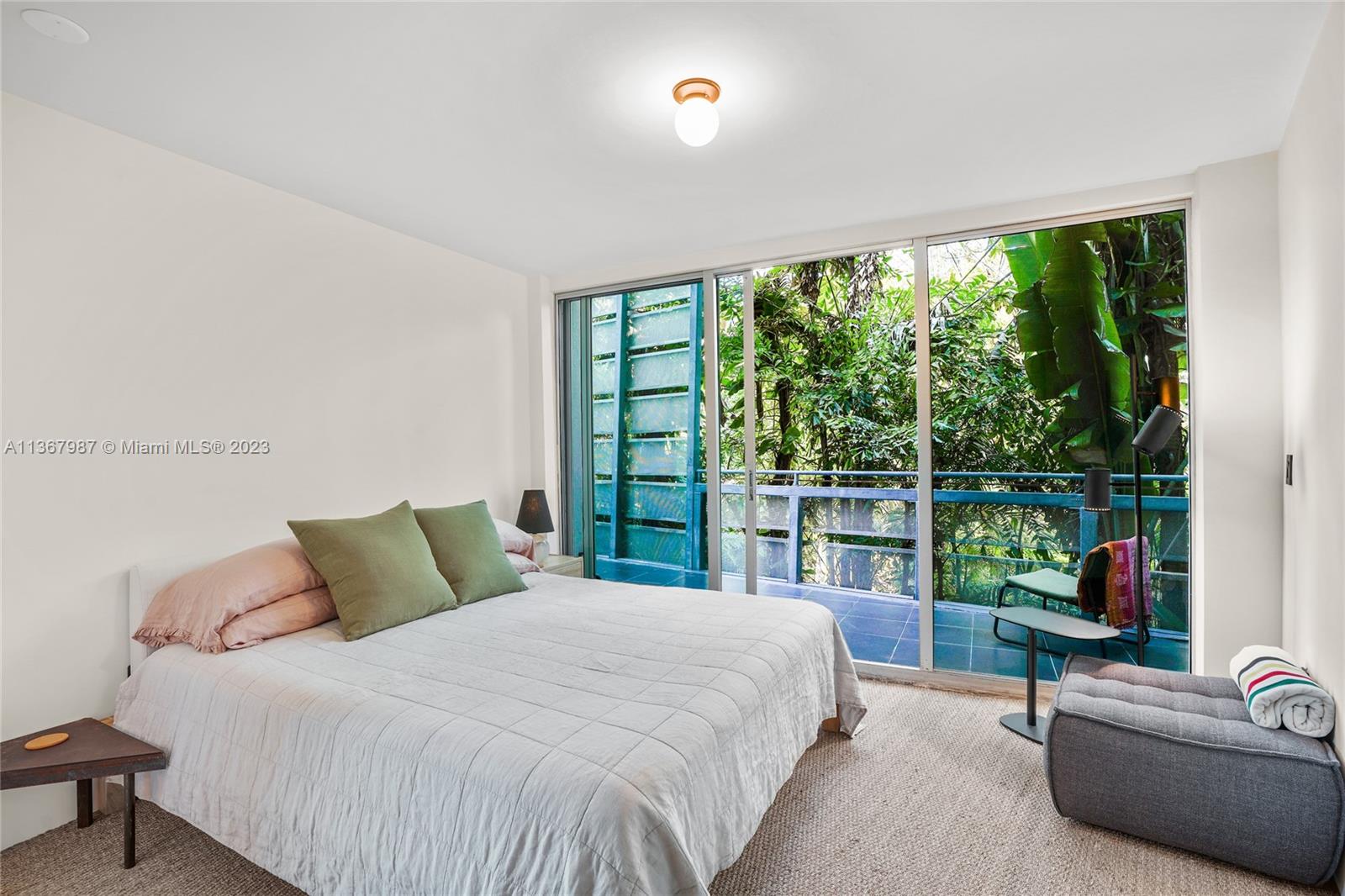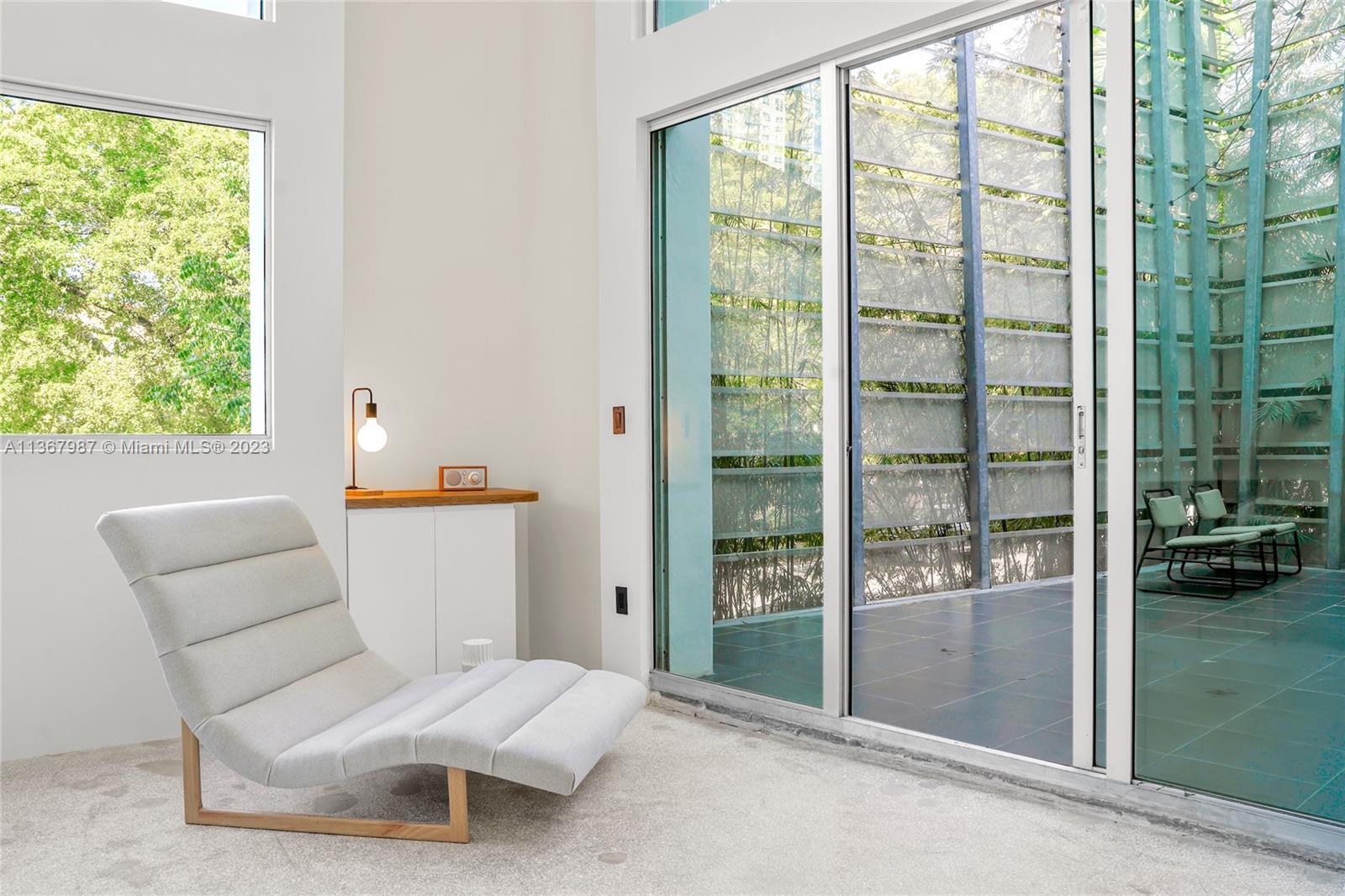Ilona, 16-unit boutique building located in the coveted South of Fifth neighborhood. Designed by architect Chad Oppenheim, this recently remodeled, industrial-chic, corner loft has 2 bedrooms, 2 bathrooms, and 17' ceilings. Two big outdoor spaces surrounded by trees and tropical plants: a very private terrace and a balcony off the main bedroom. Top-of-the-line appliances: Fisher & Paykel, Perlick, Miele. Natural oak kitchen cabinetry by Danish design studio Reform. Terrazzo floors and many windows facing west for sunset light. Each bedroom has ample closet space and en-suite marble bathrooms. Main bedroom has extra space for working and relaxing, plus a washer/dryer. Includes parking space. Short walking distance to the beach, cafes, world-renowned restaurants, and South Pointe Park.