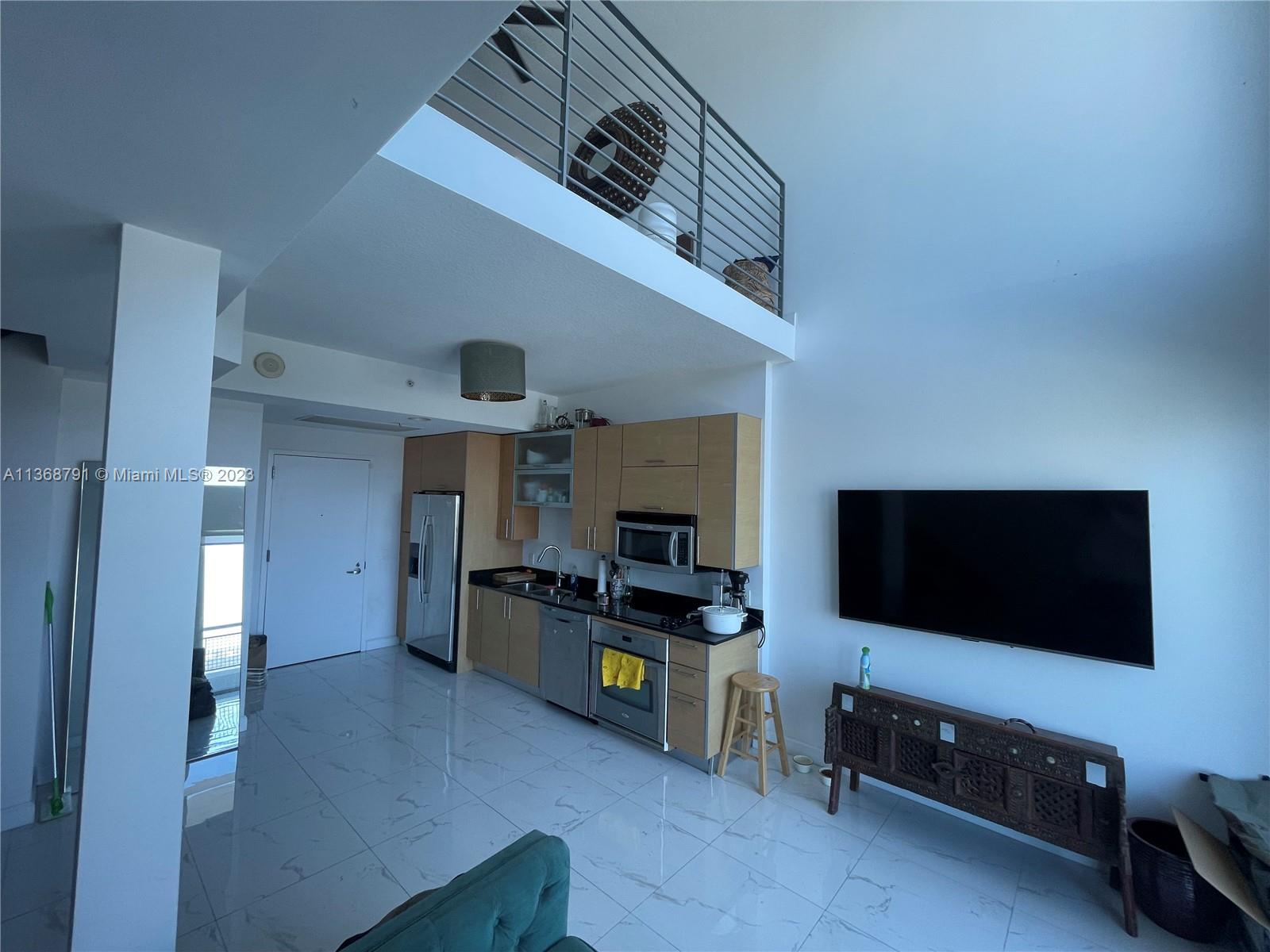 The biggest 1 bedroom floor plan with 2 full bathrooms in Infinity building. There are only a few units like this in the whole building. Soaring ceilings and spectacular city and water views. Upgraded with tile floors throughout and cherry wood on the staircase. Large masted bedroom and closet. Perfect unit for an end user or investor in the heart of Brickell. Must see to fully appreciate
