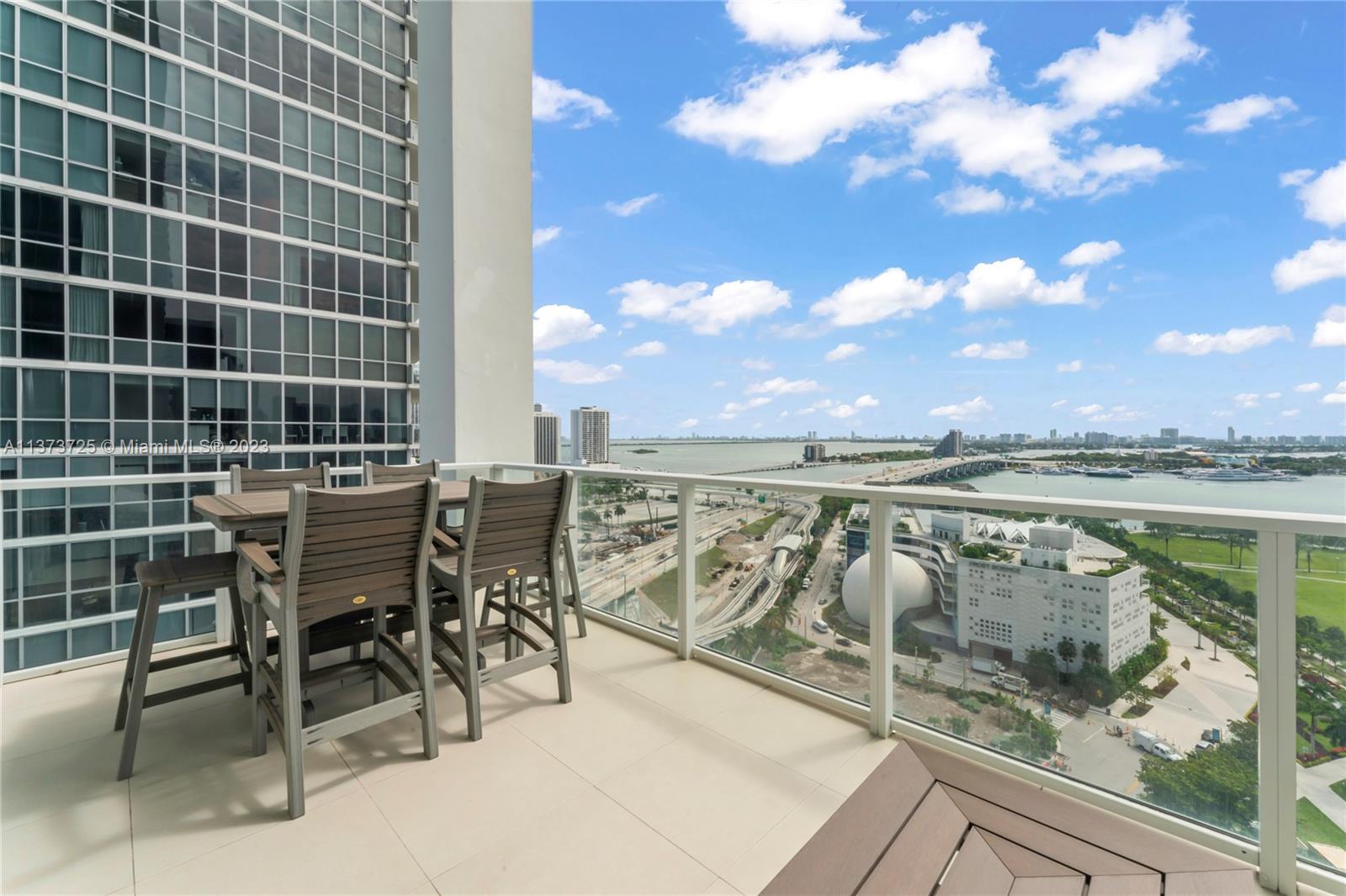 Welcome to the prestigious boutique condominium at Ten Museum Park! Designed by Chad Oppenheim, with only 200 units. In the heart of downtown Miami, this 04 corner unit has expansive walls of glass providing forever unobstructed bay views. These units rarely hit the market and offer 1730 SqFt of living space, 2 beds and 2.1 baths, and 20 Ft soaring ceiling. Unit has 2 new ACs, new full size LG washer/dryer, new dishwasher, new paint, and upgraded lighting. The building has a world-renowned spa with steam room, sauna, hot tub, 5 pools, cycling classes, yoga, 2 gyms equipped with Peloton machines. Includes 24-hr concierge, 2 valet parking spots, and an assigned climate controlled storage unit. If you prefer to lounge at the beach, the condominium belongs to Bentley Beach Club.