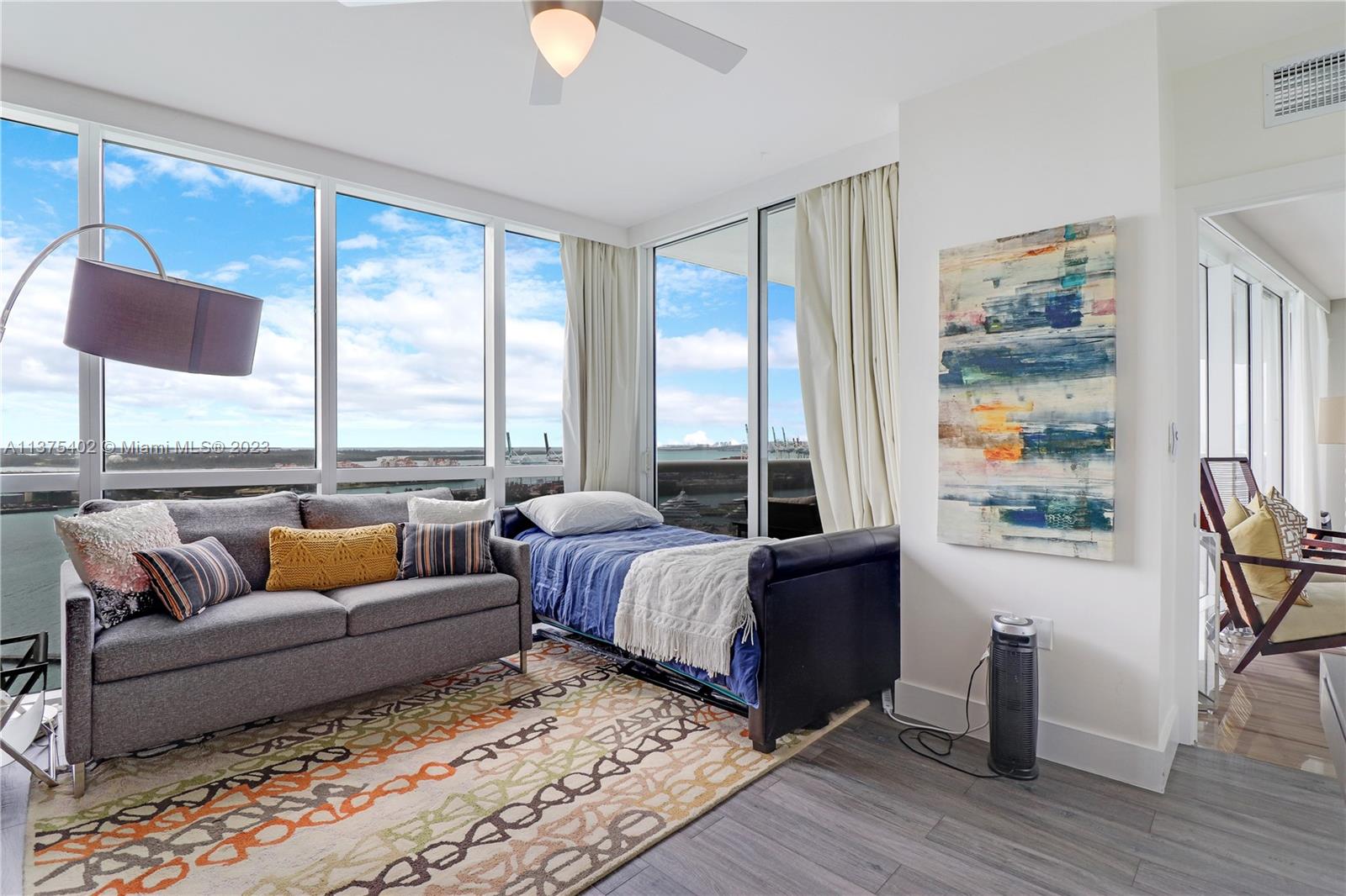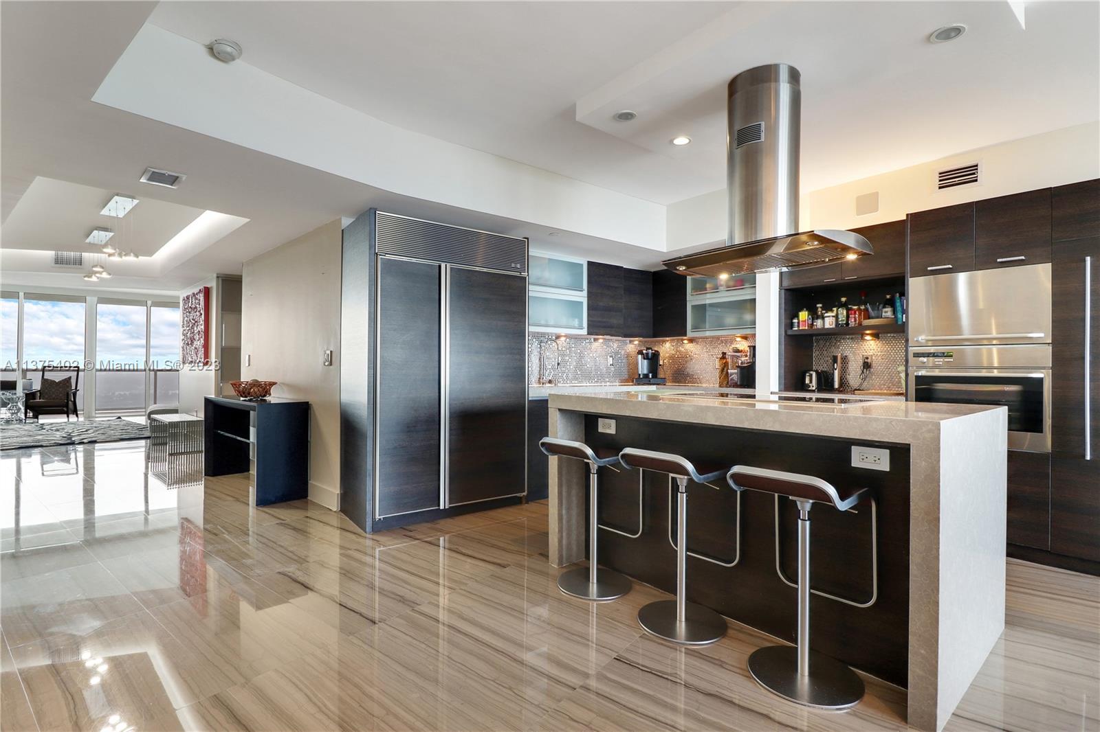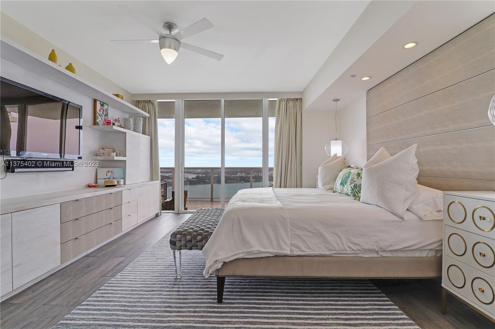 Spectacular renovated flow-through unit at the ultra-chic Murano Grande with breathtaking, unobstructed views of the ocean, Biscayne Bay and the Miami skyline. Residence 2604 consist of 4 BED/4.5 BATHS plus a bonus room that can be used as a maids/guest room. Stylishly appointed with gorgeous marble floors, custom designed built-ins with ample storage throughout, state-of-the-art-kitchen with Miele/Subzero appliances, electronic window treatments, 2 large terraces (sunrise/sunset) and a private elevator vestibule. Murano Grande is one of SOFI’s most exclusive full-service buildings with Five Star resort-like amenities such as a bayside pool, onsite restaurant, gym, spa and tennis court. Adjacent to the Miami Beach Marina, dock your boat and a day at sea is just minutes away.