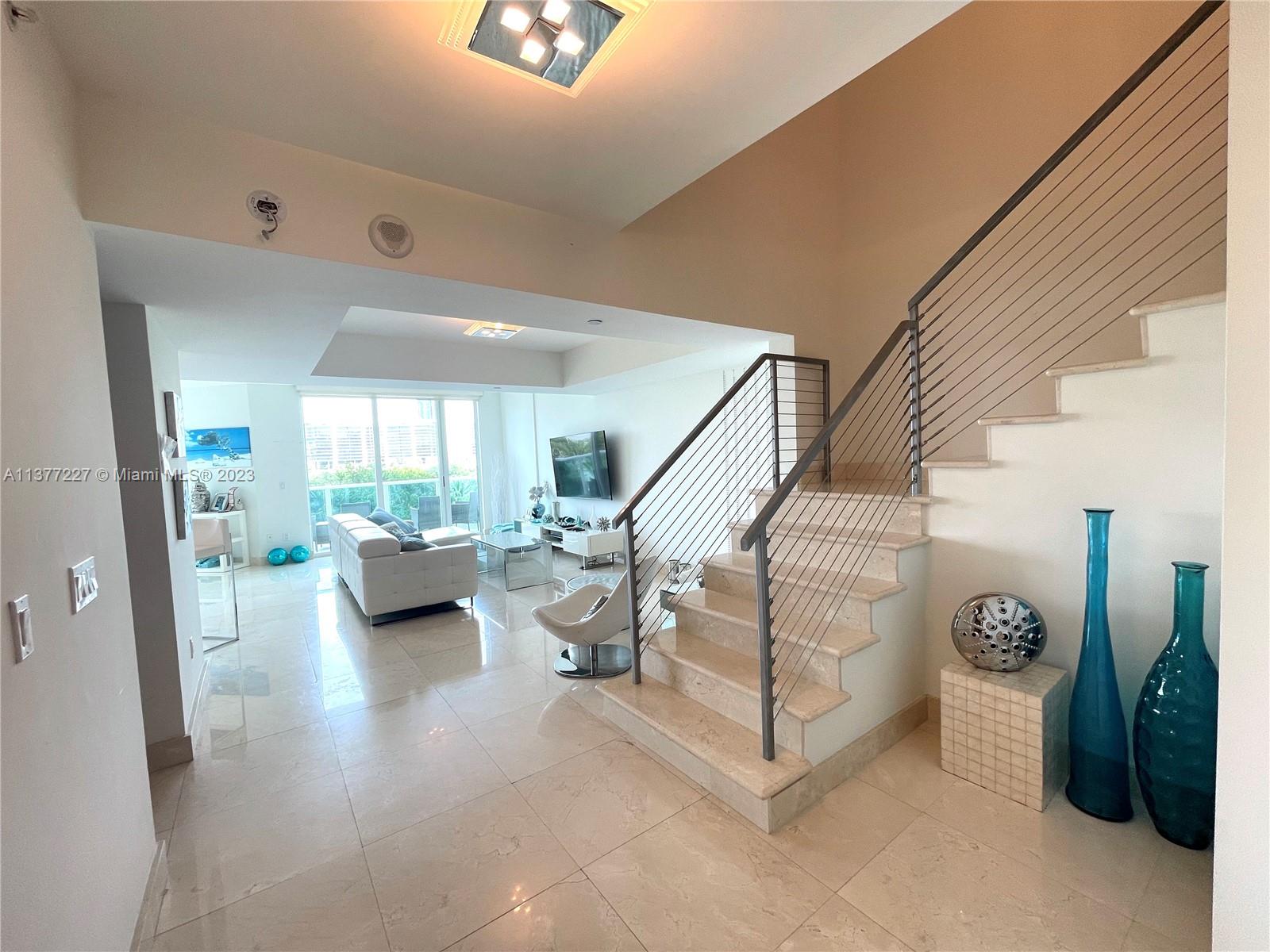 Unique opportunity to acquire duplex in exclusive Peninsula II. Magnificent unit w/ two full rooms & two closed dens converted to rooms, marble & wood floors throughout, floor to ceiling windows with intracoastal views & lots of light. First floor holds reception toilet, laundry room, & media room converted into bedroom. Living room w/ access to a large balcony. Great dining room w/ floor-to-ceiling windows & spectacular views. Kitchen with Sub-Zero refrigerator, microwave, double oven and heater & high breakfast bar. Modern staircase to upper floor with Den converted into a bedroom. Sec bedroom in suite w/ large storage closet, lots of light & views. Master bedroom, w/ large Walk in closet, master bath w/standing tub and a double-entry shower. Floor-to-ceiling windows w/ intracoastal view
