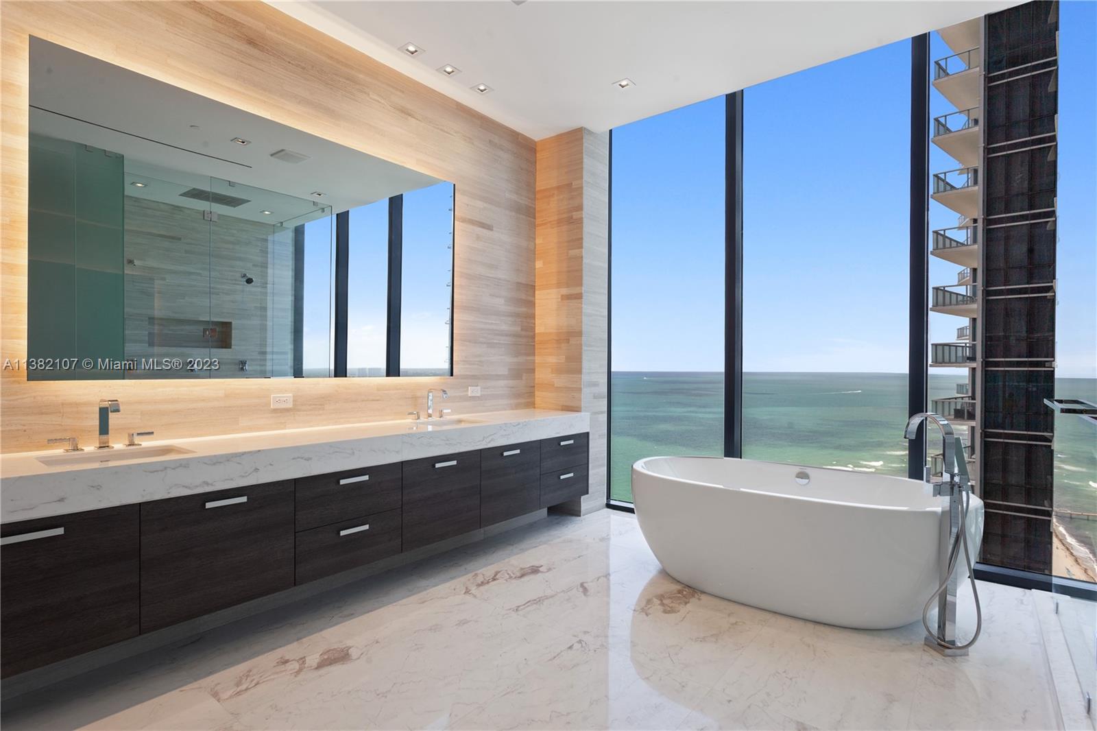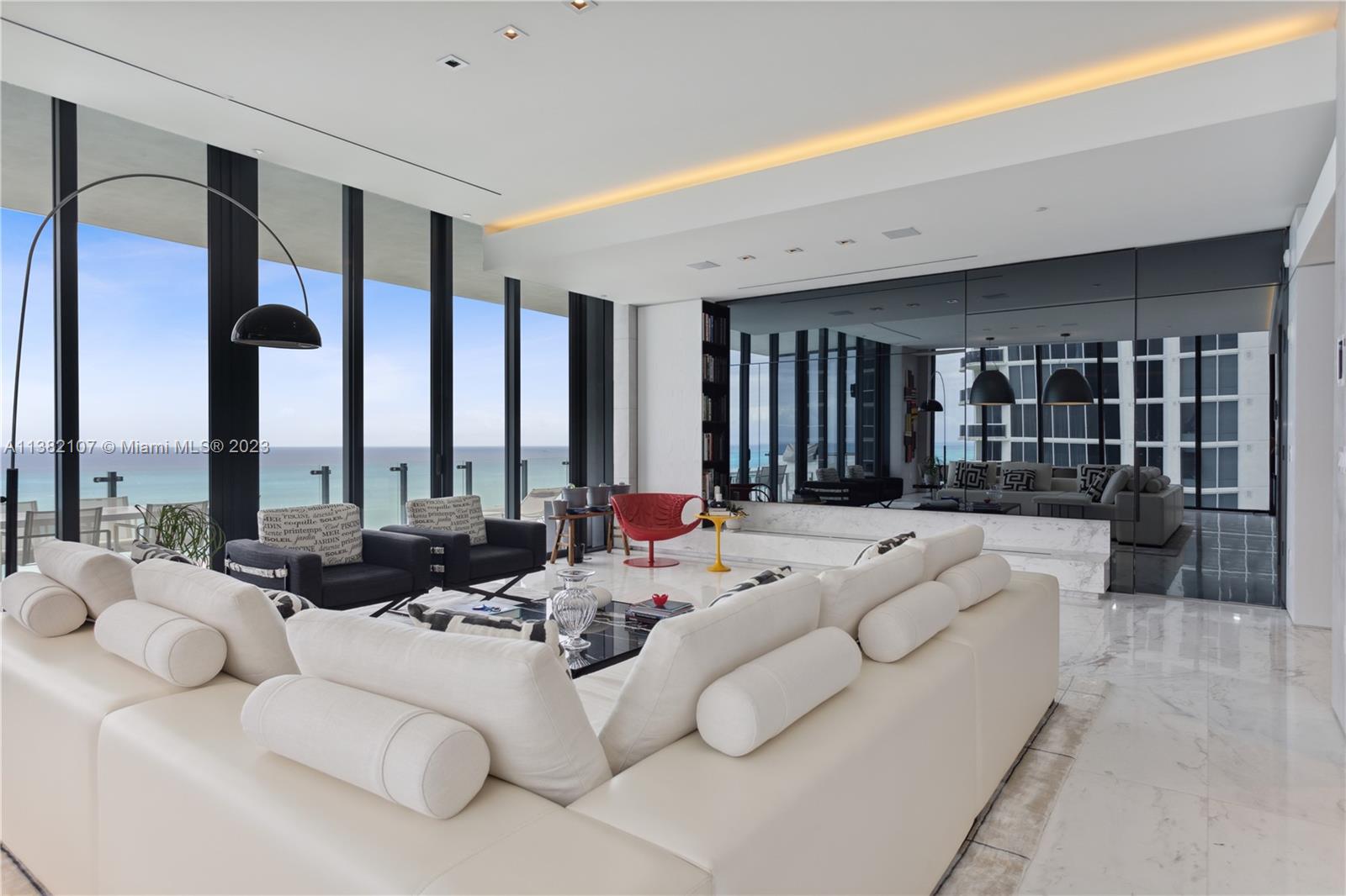 Muse Residences is an ultra-exclusive boutique building with exceptional private amenities. This unique, combined double-unit offers 6 bedrooms, 7.5 bathrooms, and a spacious, open floor plan. Smart-home fully automated with Floor-to-ceiling windows and 14-foot ceilings invite natural light to illuminate the entire home, while showcasing incredible panoramic direct ocean and skyline views. The residence was redesigned by the renowned Troy Dean Interiors. Additional special features include right to park up to 6 vehicles, wine storage, and 2 private elevators.