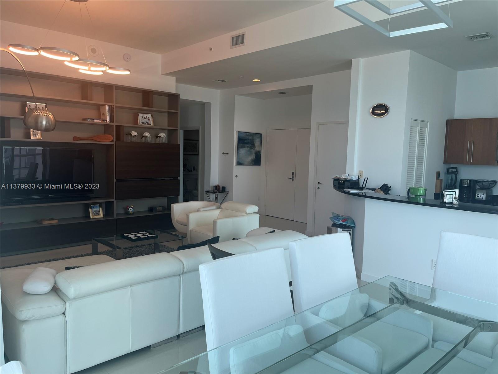 Beautiful Penthouse in the desirable MET 1 building with stunning panoramic views of the Bay/Ocean/South Beach and beyond. The double door entry opens to a spacious living room, dining area and wonderful ocean views. The unit has porcelain floors, This unit has high ceilings throughout. The open kitchen is spacious, well equipped and perfect for entertaining. Enjoy ocean breezes, amazing sunrises, passing boats, city lights, and more from the wraparound balcony. Met 1 Condo has amazing amenities : Gym, Pool, Sauna, Media room, restaurant, cinemas and shops in the area, steps away from Whole Foods, Silver Spot Cinema, Metro mover and more. Vacant unit. Easy to show.Great investment opportunity.