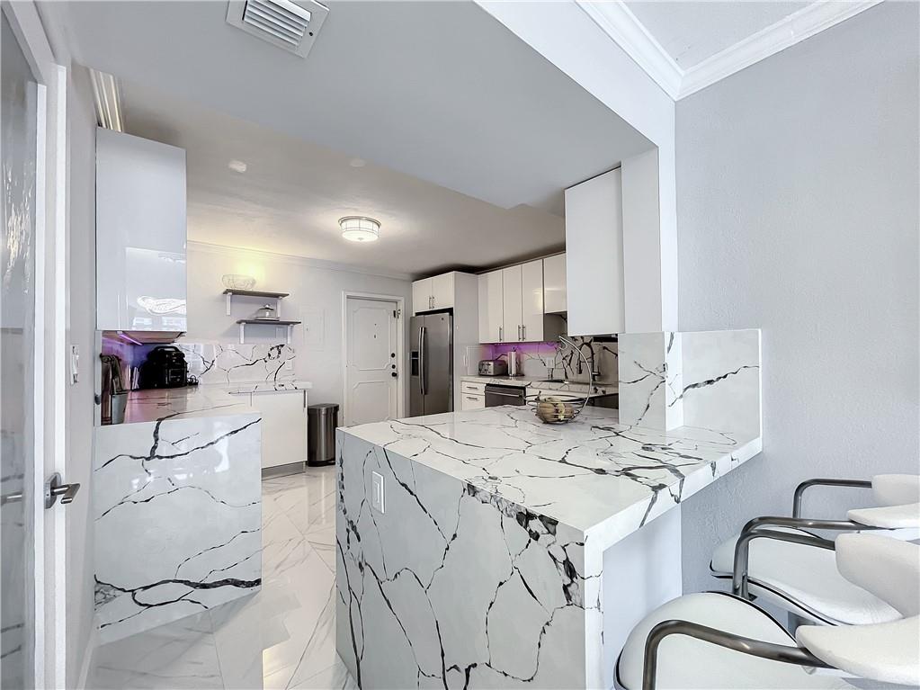 If your MUST HAVE list includes: being on the sand, with beautiful views of ocean and city, 1600 sq ft of living space, completely renovated unit with washer/dryer in the unit, split bedrooms, kitchen that was just updated with quartz waterfall design and modern cabinetry. The building has lobby security 24/7, pool, hot tub, gym, sauna, tennis, panoramic view from the party room and lounge area, 1 garage space and much more. All of this and the building is located in walking distance of restaurants, night life and a few minutes' drive south to Las Olas & Ft. Lauderdale for Broadway plays to the north Boca Raton, Delray Beach for more entertainment and dining. This is what you'd find living at the Renaissance!