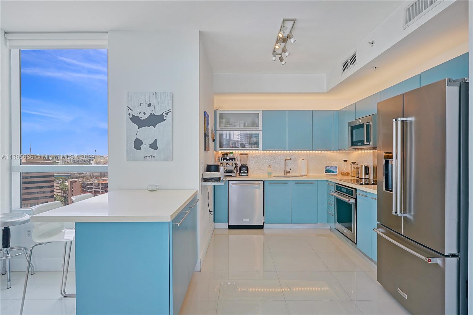Ivy Condo Downtown Corner unit with amazing City and river views! Impeccable condition! Two bedroom- Two bathroom with tile and laminate in bedrooms. New Kitchen-aid kitchen appliances. Microwave can also become oven. New Samsung side by side washer and dryer. New ceiling fans in LR and MBed, Spotlight fixtures, Motorized shades and smart home lights throughout, floating deck tiles on balcony. Bidet toilet in Master bath. Furniture Negotiable including TV’s (85” Sony X900F in LR, 65” Sony X900F in MBed) Gym, Pool, Spa, Hot tub. Amenities deck was recently remodeled. Dog park next to river was recently remodeled. Phase 2 will be Lobby, Elevator Foyers, Hallways and Party Room renovations. Walking distance to Brickell and Downtown shopping, restaurants, and nightlife. This will not last!