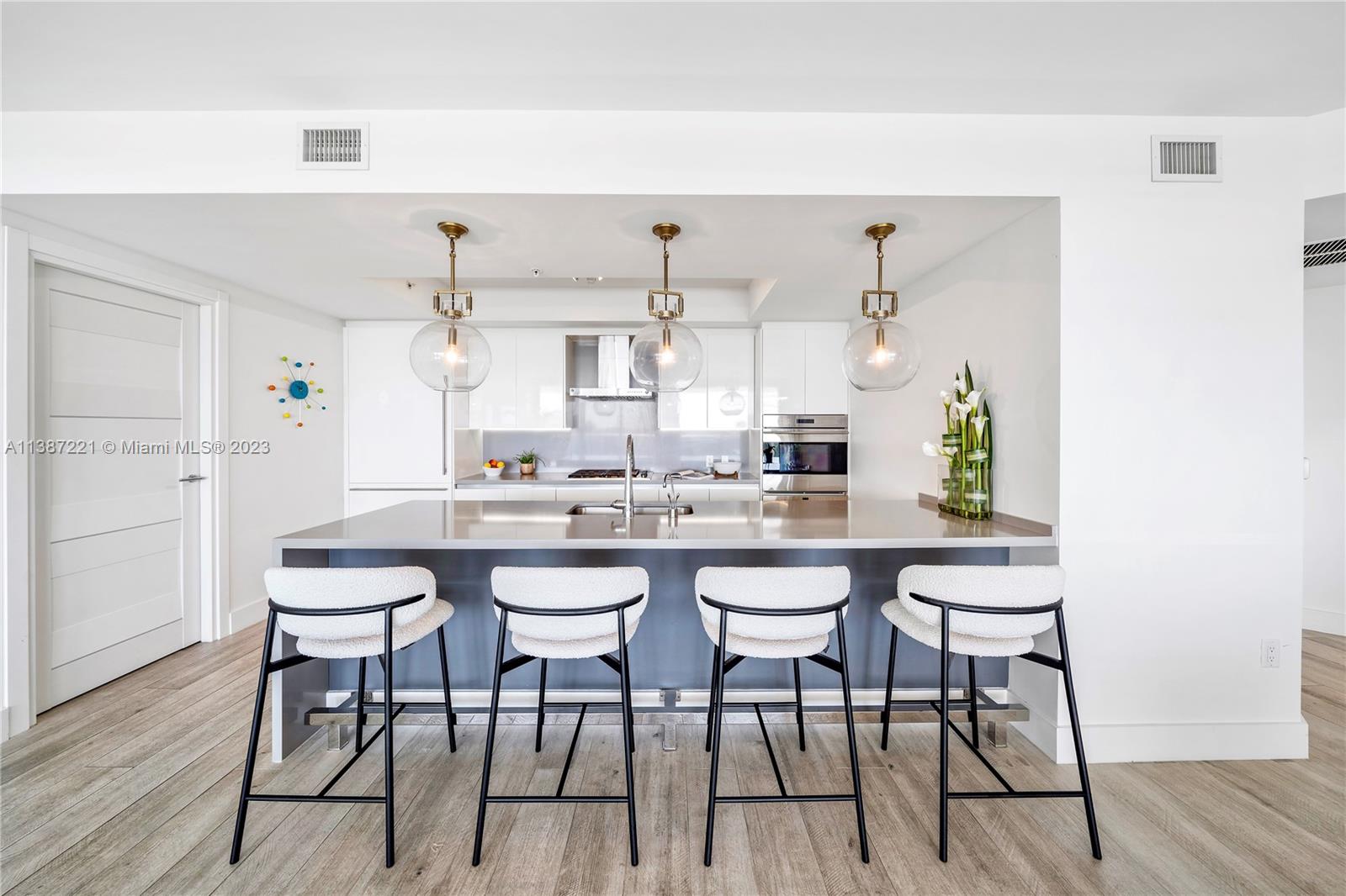 Indulge in the Ultimate Indoor/Outdoor Lifestyle in this Exquisite Waterfront RIVA Residence, Offering Breathtaking Water Views from Every Room & 867 SF Private Terrace w/BBQ. Most Desirable 02 Plan Features 3 Bedrooms, 3.5 Bathrooms, Custom Upgrades & Chic Lighting. Chef's Kitchen Equipped w/Wolf Gas Cooktop, Sub-Zero Fridge & Wine Cooler. Spacious Primary Suite Boasts 2 Walk-In Closets. Private Elevator Entry, Pantry/Laundry Room, 2 Parking Spaces, 2 Lockers. Boat Slip w/Lift Available for Lease. 40,000 SF of Amenities: Heated Pool, 7,000 SF Gym, Yoga, SPA w/Sauna, Steam & Massage Rooms, Resident's Lounge, Sunset Deck w/Jacuzzi, Cucina, Suites for Guests, 24/7 Front Desk, Valet, 2 Dog Walks, 400' of Waterfront & Central Location. Can be Sold Furnished. Truly the Epitome of Luxury Living.