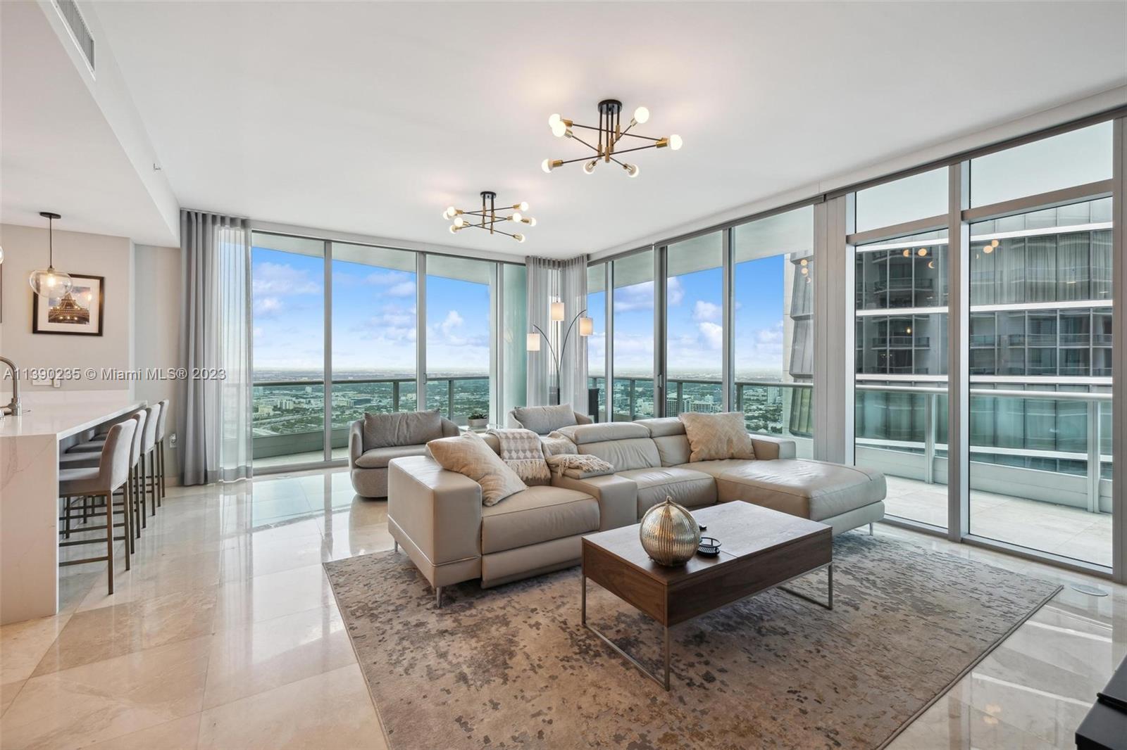 Breathtaking Miami Skyline and water views from this 3 bed/3.5 bath Penthouse in the sky. Property features 24x24 Italian marble floors throughout, formal dining, private bath and balcony in each room, state of the art open kitchen with Subzero fridge and Miele appliances and private elevator. This luxury high rise tower offers the comforts of an amazing Spa and many other on site amenities including a fitness center, 2 pools and concierge service. Unit. Easy to show