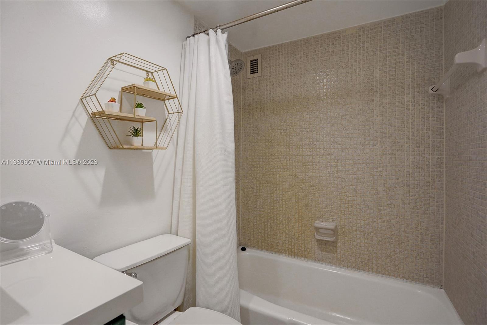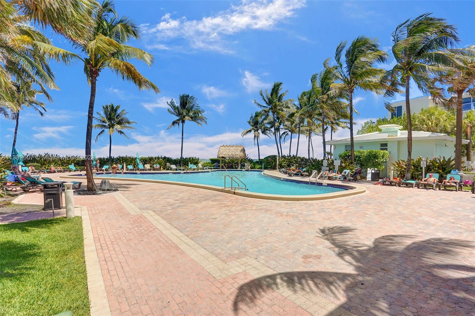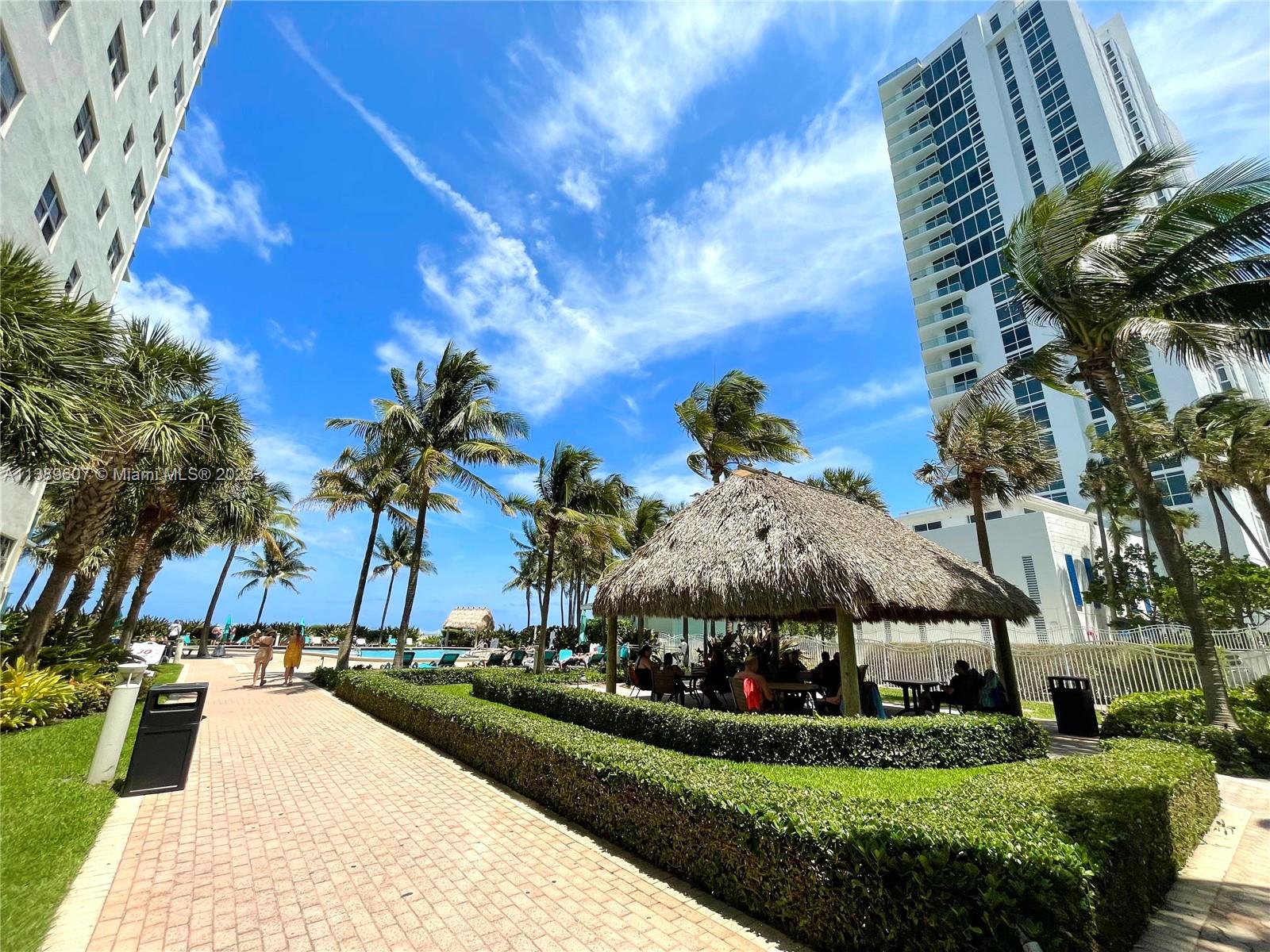 Beachfront building with fabulous amenities. Ocean views to right & city skyline to left. Allows Air B &B great income or use when you want. This 1/1 is large & fully furnished turn key. Tile throughout, hurricane patio door & glass balcony. Kitchen has quartz counters, subway tile backsplash, white cabinets & space for a kitchenette table. Toaster, coffee maker, pots/ pans and dishes come with. Bedroom has 2 beds + living room can be sleeper sofa, so a a total of 6 can sleep. Large walk in master closet + hall closet & linen closet. Flat ceilings/ no popcorn. Bathroom has tub & tile shower. Laundry on each floor- steps to this unit but no noise. Resort style pool, gym, game room, lobby, business center, valet parking. HOA fee includes cable, water & A/C. On beach close to shops & cafes