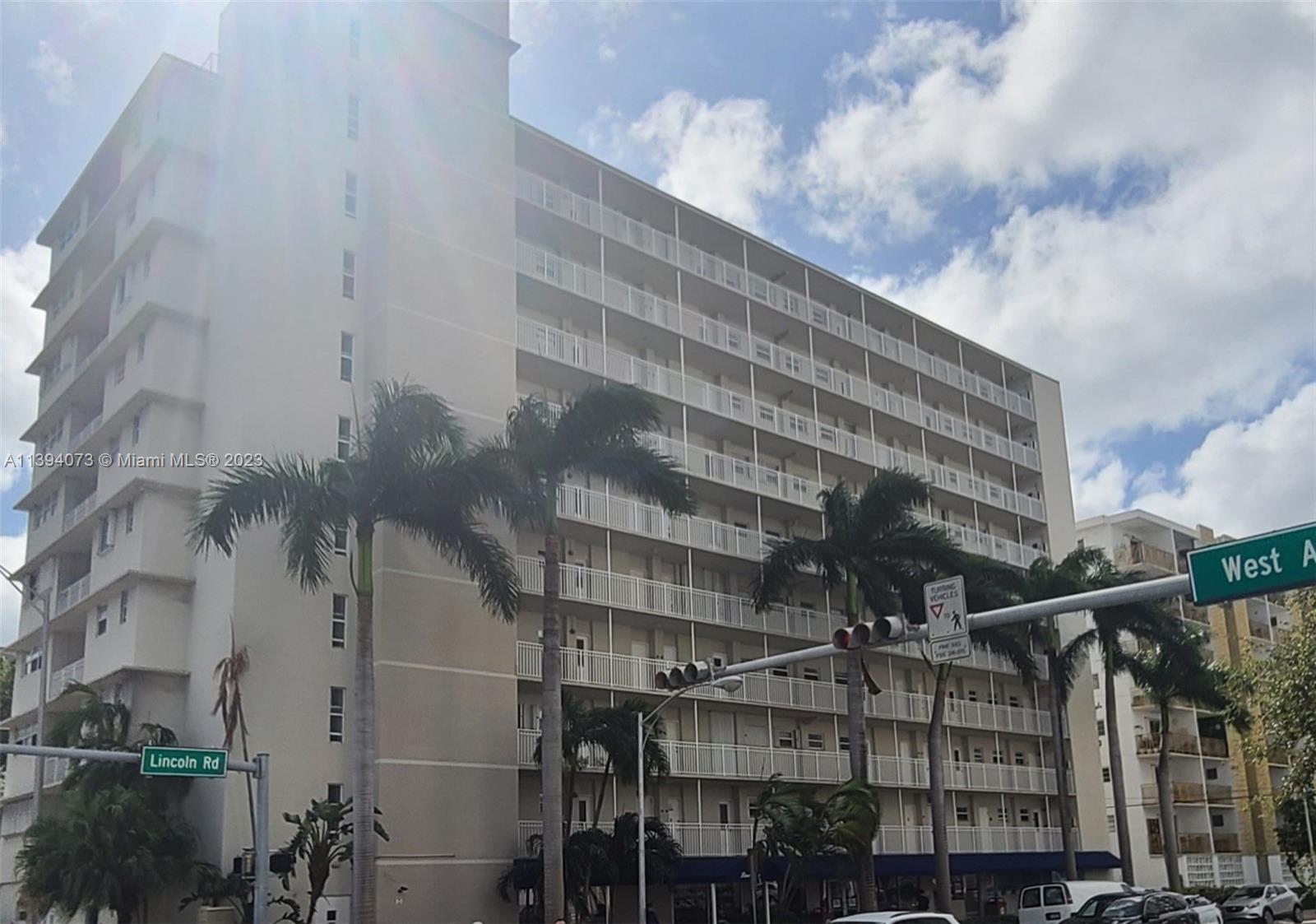Studio with assigned parking space on Lincoln Rd. Has a walk in closet and split unit A/C. Has a supermarket on the first floor.