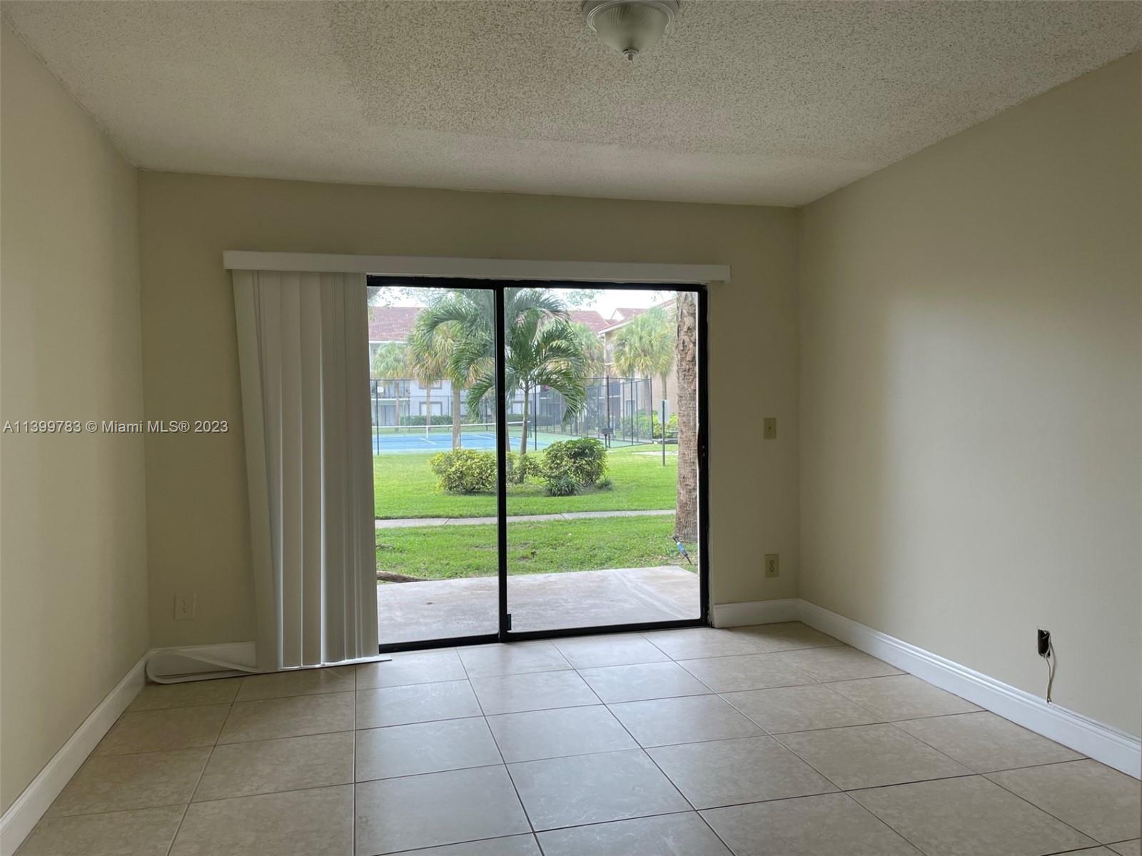 Beautiful first floor move in condition split plan 3/2 with serene garden and tennis court view. Granite and wood cabinetry in kitchen. Tiled floors throughout. Two of the bedrooms have spacious walk in closets. Full size washer and dryer laundry room in unit. Storage in patio. Fabulous location close to most amenities including Coral Square mall Community offers security gate entry, gym, pool, clubhouse, playground, ample parking and more. Great for investor - can be leased right away with low(er) association fees. Pets welcome.