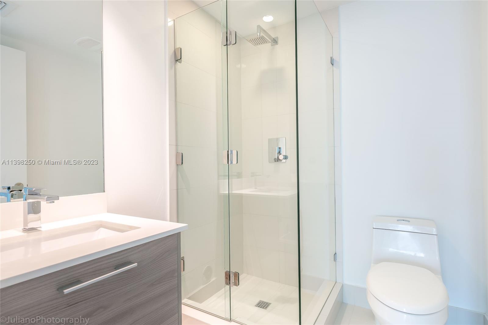 This stunning and spacious apartment boasts three bedrooms and two full and one-half bathrooms, combining elegance and coziness. Its floor-to-ceiling windows allow an abundance of natural light to fill the space, offering breathtaking views of the cityscape and bay. The primary suite is a tranquil haven, featuring an ensuite bathroom with a luxurious soaking tub, a separate shower, and a dual vanity sink. The second bedroom is generously sized, and its bathroom includes a convenient shower/tub combo. The kitchen is sleek and contemporary, complete with high-end appliances, custom cabinets, and a sizable island. Located in the vibrant Brickell neighborhood, this apartment serves as a serene retreat while immersing residents in the lively and dynamic community that surrounds them.
