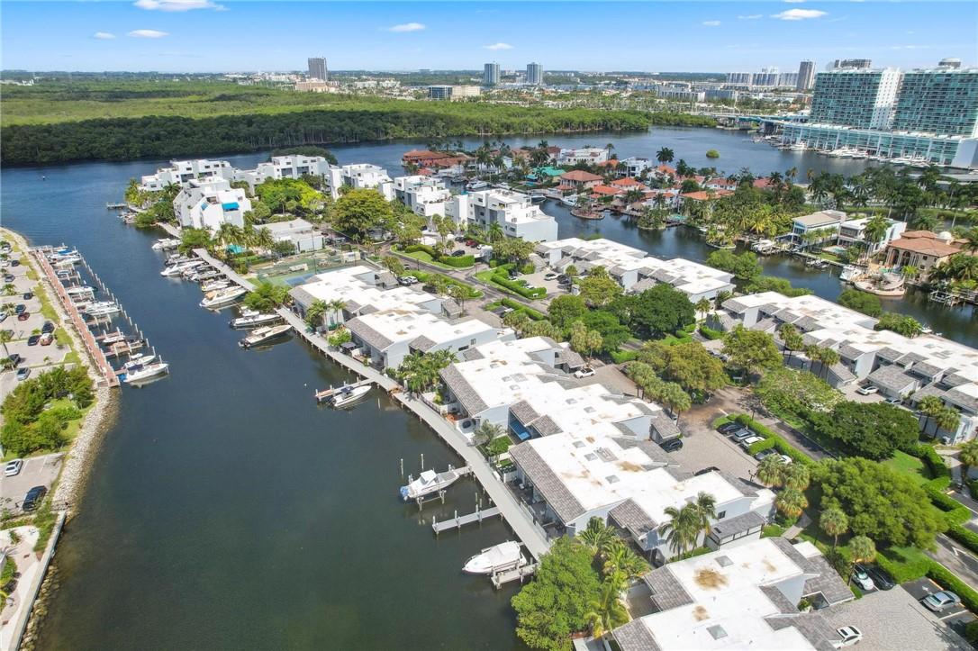 Deluxe Waterfront Townhouse at the Island Community of Poinciana Yacht & Racquet Club! On the Water w/Ocean Access & No Fixed Bridges. Across the street from the Beach!! Less than 2 Miles from the Haulover Inlet. Volume 2-story Ceiling w/Skylight. Car Garage. Preferred South-side of the complex!! The 3rd bedroom was extended to provide addtl space for an office/etc. Custom Kitchen, Quartz Tops, Glass Backsplash & High-end Stainless Steel Appliances. Newer roof. Impact Frt Door & Storm Shutters. Private 32’ Private Dock. Waterside Patio Area to enjoy daily boat parades. 24-hour manned Guardhouse. Resort-Style amenities incl Two Pools, Spa, Clubhouse featuring a New Fitness Ctr, Club Room, Sauna, Racquetball Courts, Basketball Courts & 4 Tennis Courts! Pet friendly! Good school district too!