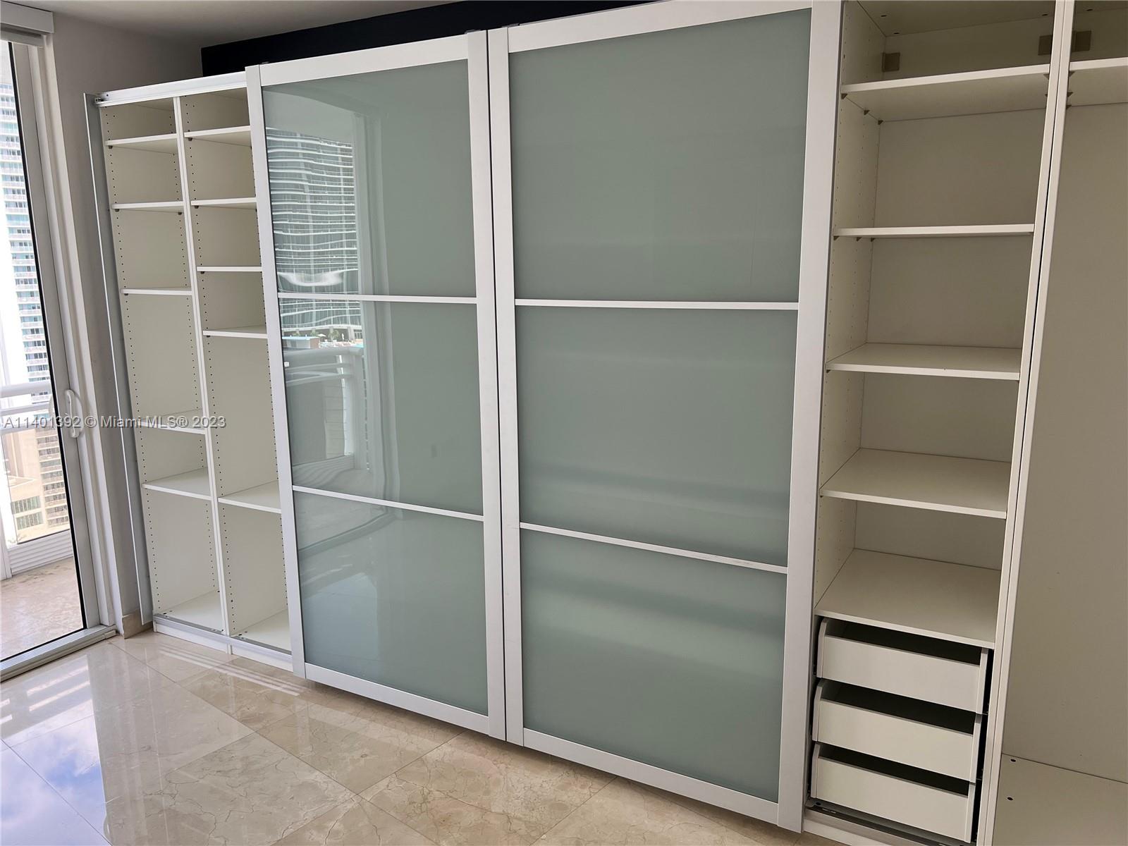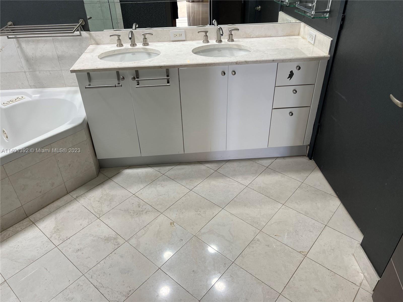Water and skyline views, luxurious residence, marble floors, huge balcony, eat-in kitchen with Italian cherrywood cabinetry, stainless steel appliances, wine cooler, master bath with bidet, whirlpool and separate shower, walk in closets, full washer and dryer, amenities include bi-level fitness center, infinity 30 meter pool, tennis, racquetball, concierge, security. Brickell Key is and exclusive island oasis with $500 million invested in this centrally located island close to airport and beaches.