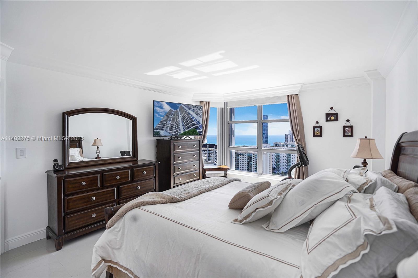 Amazing panoramic ocean and intracoastal views. Spacious two bedrooms and two bathrooms condo located in the prestigious Mystic Pointe Tower 100. Two main bedrooms with ensuite bathrooms. Open concept kitchen. Porcelain tile throughout. Lots of windows and very bright. Hurricane shutters and washer and dryer. Mystic Pointe enjoys five-star amenities such as pickleball, tennis courts, basketball court, restaurant, marina, lush gardens, dog park, fabulous pool, jacuzzi, fitness center, and much more!. Located close to the Aventura mall, sunny isles beach, and in between two international airports.