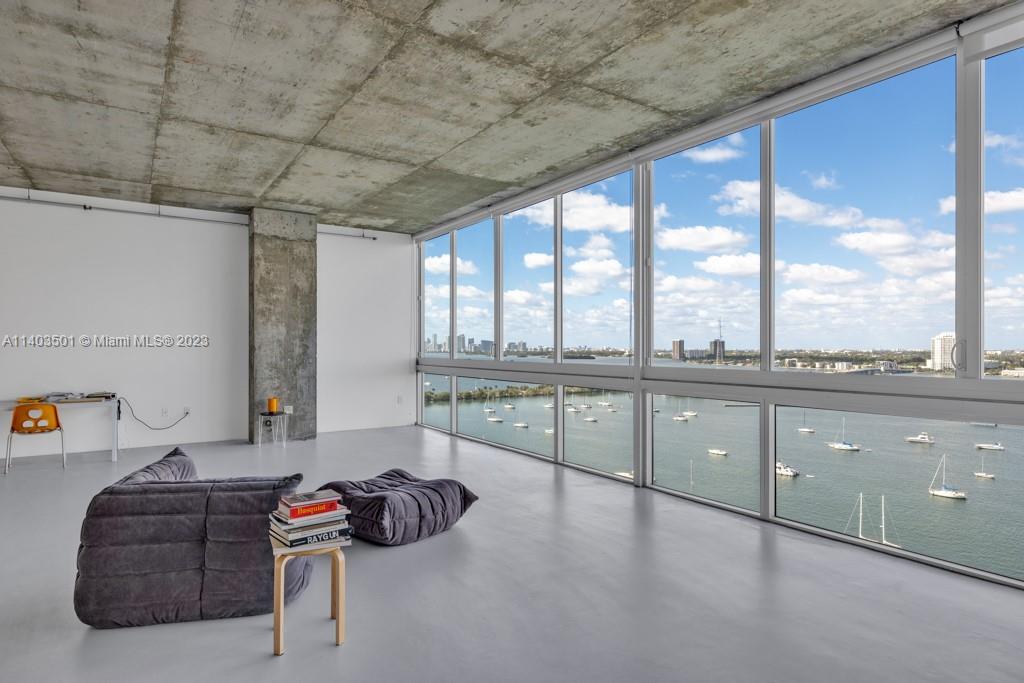Rare double-unit loft on the 15th floor of the boutique waterfront condominium, Space 01. With 68 feet of panoramic floor-to-ceiling Biscayne Bay views and nearly 3700 combined square feet, the property enjoys an open living area, an enclosed bedroom on one side, and passageway into the second loft which boasts an open studio-bedroom, for a combined 3BR/4BA. The units come with three parking spaces, plus one street parking pass. The building offers a pool and hot tub with stunning city and bay views, a fully equipped gym, electric car charging stations, and a video intercom system at the entrance to the lobby. Selling together with folio 23-3209-048-0420; all property info, taxes shown are combined and HOA is per unit.