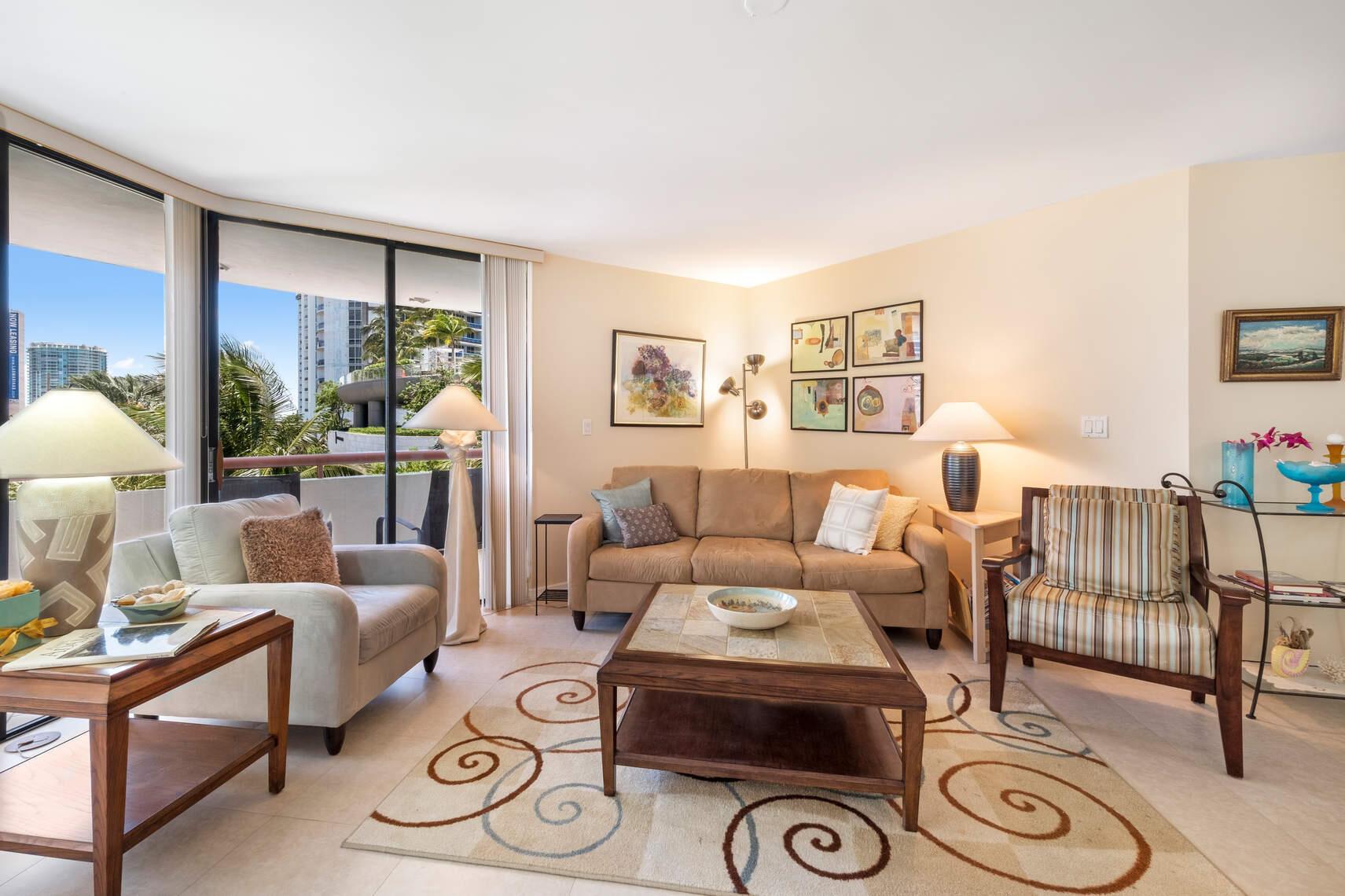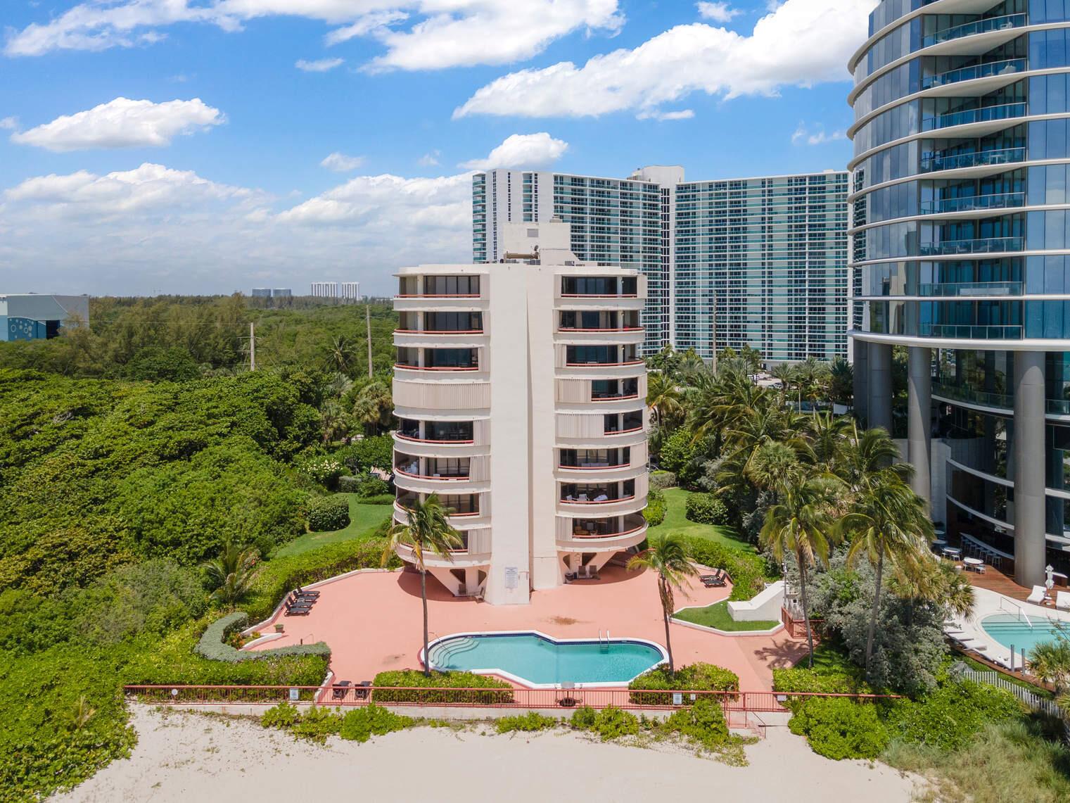 Rare opportunity to own a corner 2 bed/2 bath unit in The Tropicana, a boutique building designed by famous Fontainebleau Hotel architect Morris Lapidus. Updated kitchen is open to living room overlooking the wrap around balcony with wall-to-wall sliding doors. Huge primary bedroom features partial ocean view, oversized walk-in closet and updated bathroom with bidet and glass door tub. In-unit washer/dryer, assigned parking space and additional storage unit. Furniture is negotiable. Prime water-front location with direct beach access; neighbors the Ritz Carlton residences to the north and Haulover Park to the south. Enjoy South Florida living at its best!