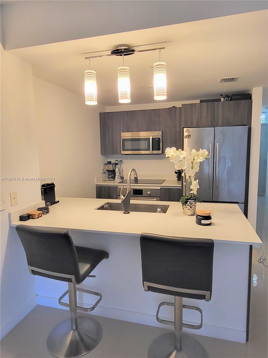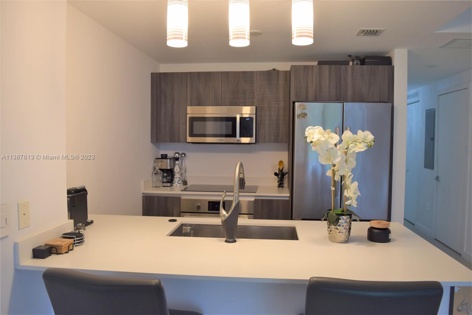 Introducing a luxurious 1-bedroom, 1.5-bathroom condo in vibrant Miami. This residence offers breathtaking bay and city views.The unit features porcelain floors, spacious walk-in closets with cabinets, providing ample storage. Designed with your comfort in mind, the condo is equipped with black-out roller shades for peaceful nights of rest. The kitchen boasts top-of-the-line stainless steel appliances, adding a touch of modernity. Dive into the pool, work up a sweat in the gym, or unwind in the spa and sauna. For entertainment, enjoy a game of pool or the movie area. There's even a dedicated kids' area. Conveniently located, this condo offers proximity to all that downtown Miami has to offer. Plus, the beach is minutes away for sun-soaked enjoyment. Don't miss this dream home opportunity.