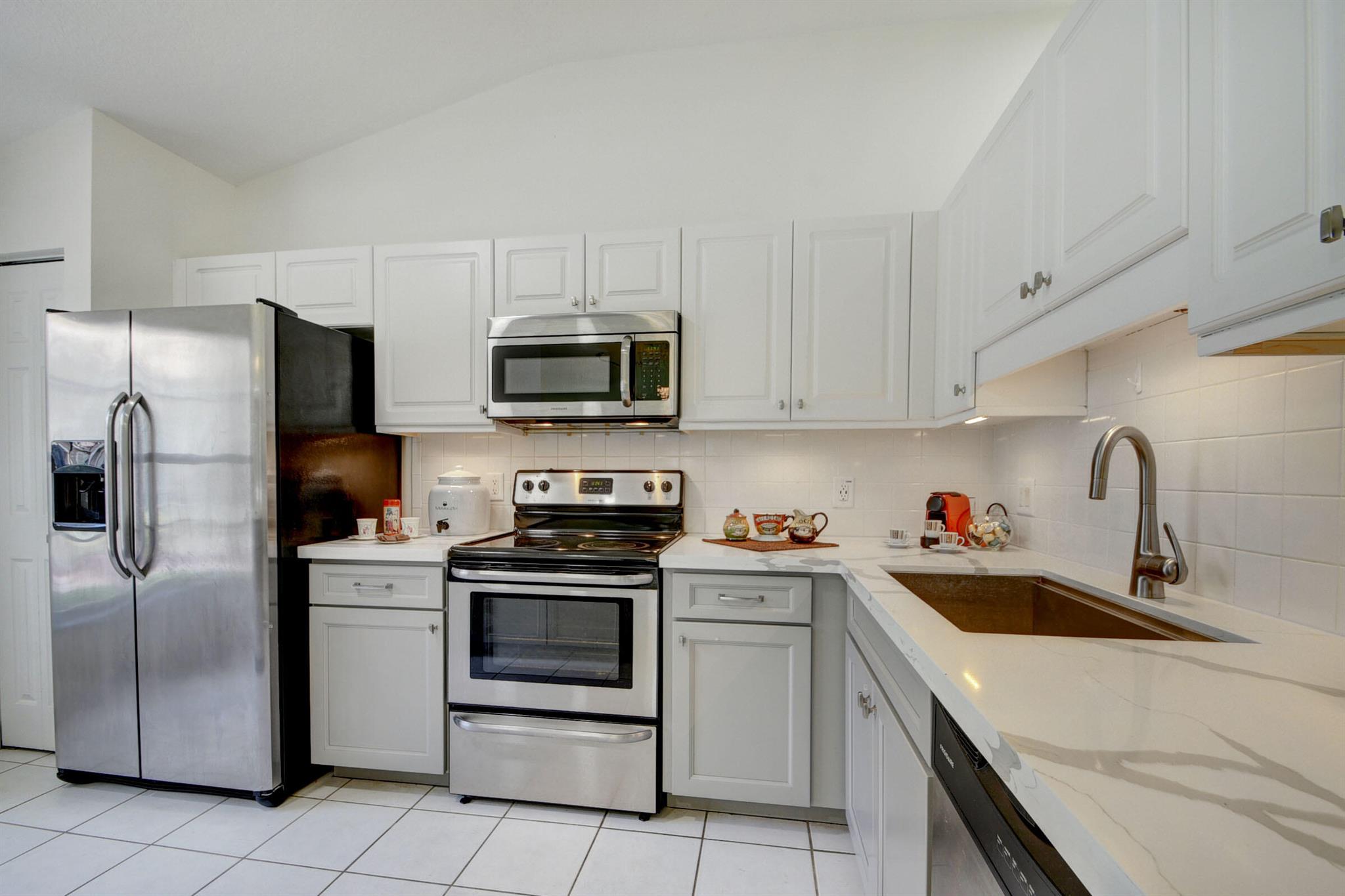 Come to live in this bright and spacious villa with 3 bedrooms, 2.5 baths, two car garage and 2 parking spaces within driveway located in a lovely gated community Andros Isle. Featuring kitchen w/ upgraded quarts counter top and new cabinets, stainless steel appliances, tile flooring, vaulted ceilings, walk-in closet. Your guests will enjoy the open dining living area with a magnificent serene lake view. Andros Isle is a 24-hour manned gate community with LOW HOA fee with a fantastic clubhouse, pool, tennis courts, bocce, playground, fitness room, and more. Enjoy the Florida Lifestyle! Close to Turnpike, Palm Beach International Airport, shopping and beaches. You will LOVE calling this place ''HOME''!