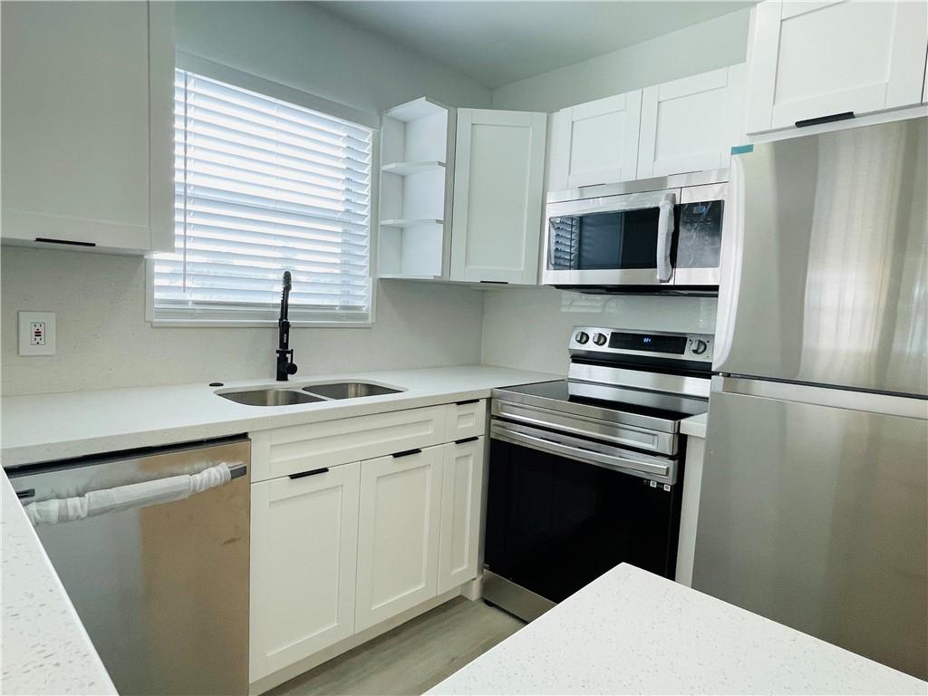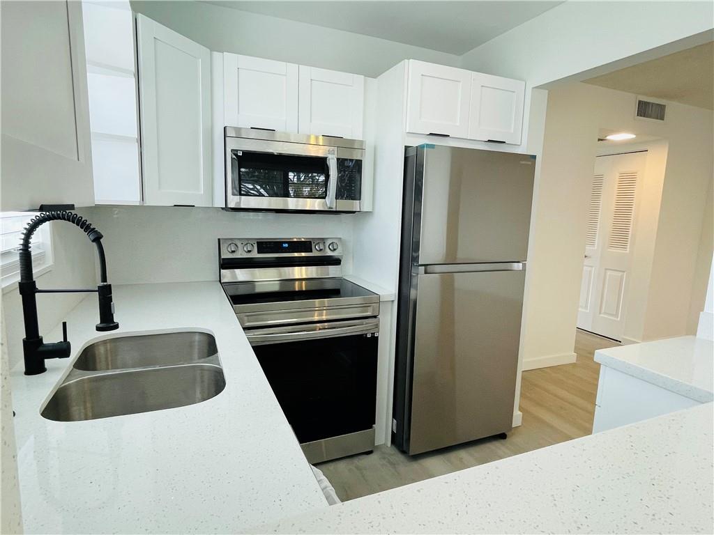 Full remodeled Corner unit in second floor 1b/1.5b (Century Village 55+ Community). Open layout Living area, brand new kitchen with quartz countertop, brand-new stainless-steel appliances and white cabinets. Bran new floor throught-out, freshly painted, Plentiful Closet, Spaces in Main bedroom, Pantry and super spacious Balcony. Water heather is 2020, AC air-handler and condenser 2020, Roof replaced 2023, No special assessments, Association has its own private common area. Community has ample amenities, numerous pools, clubhouse, gym/fitness room, tennis, social clubs, courtesy busses. The location is near beaches, airport, shopping & downtown West Palm Beach. Easy to show.
