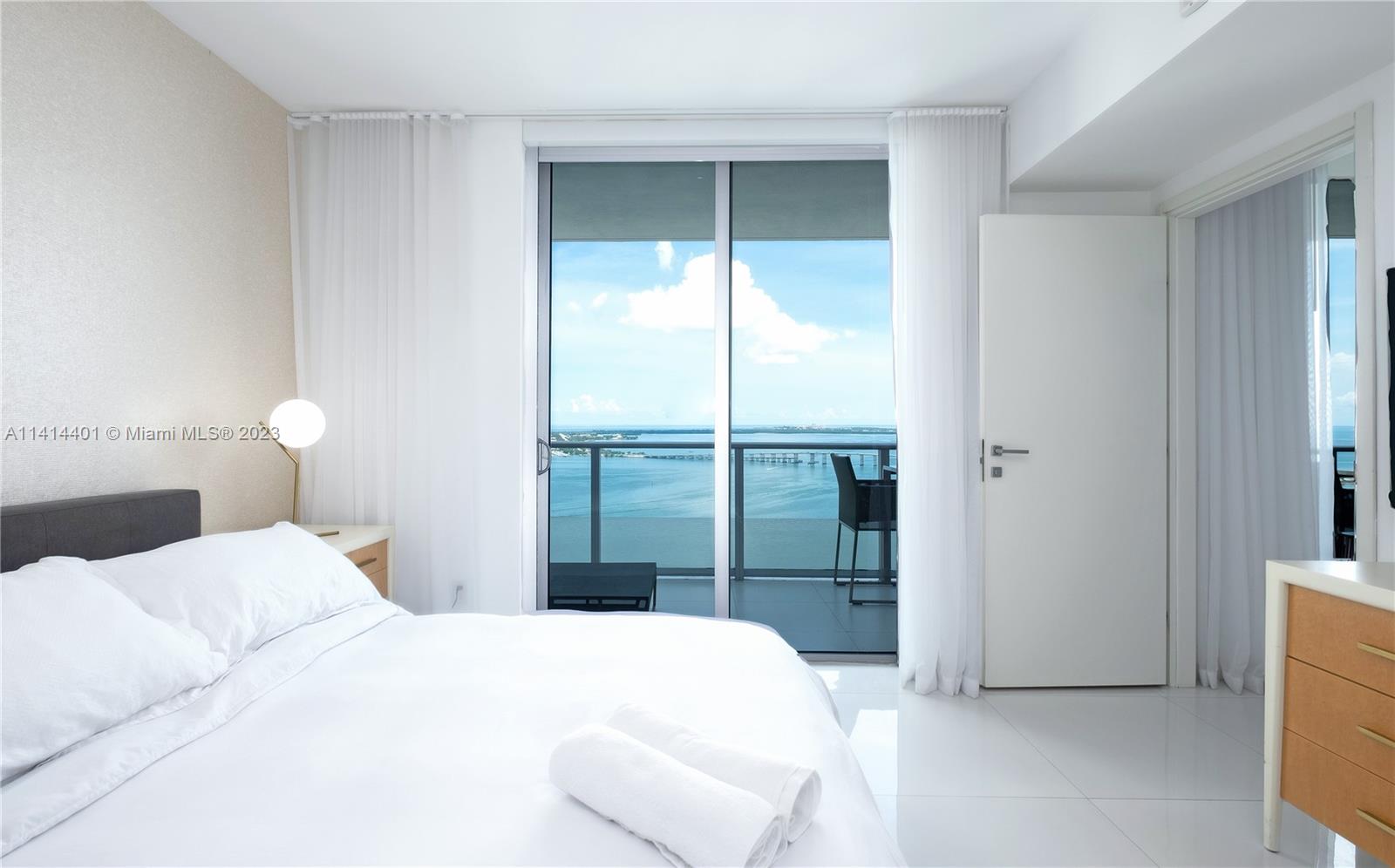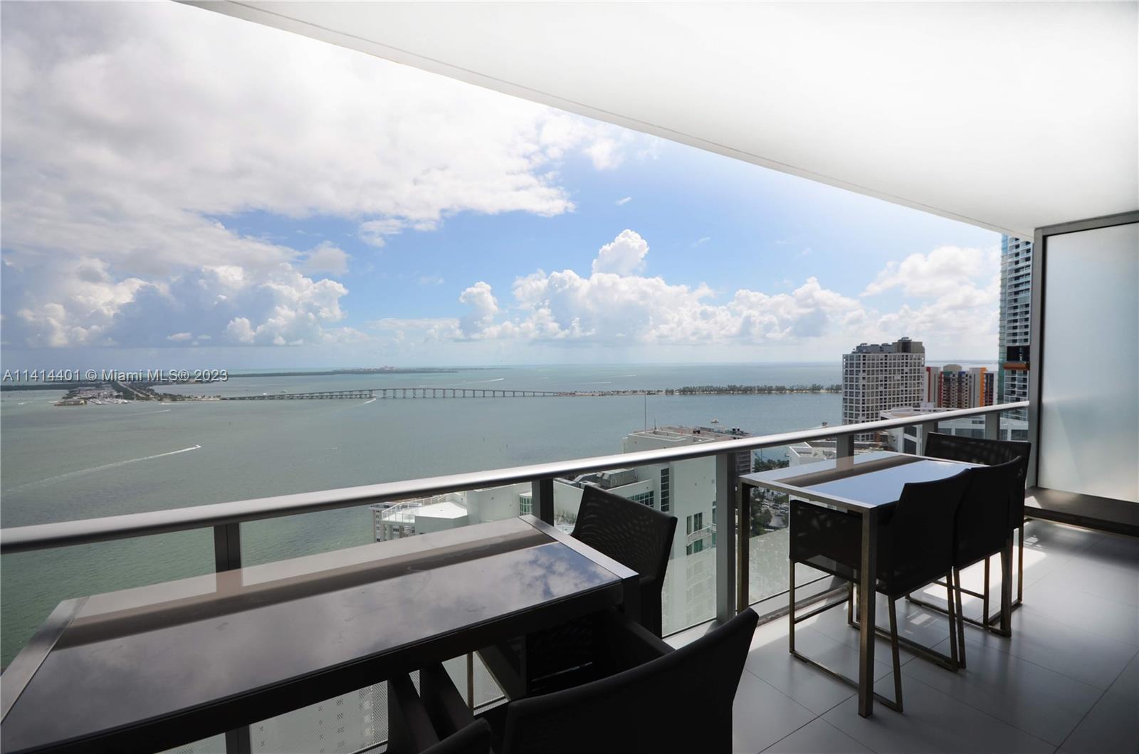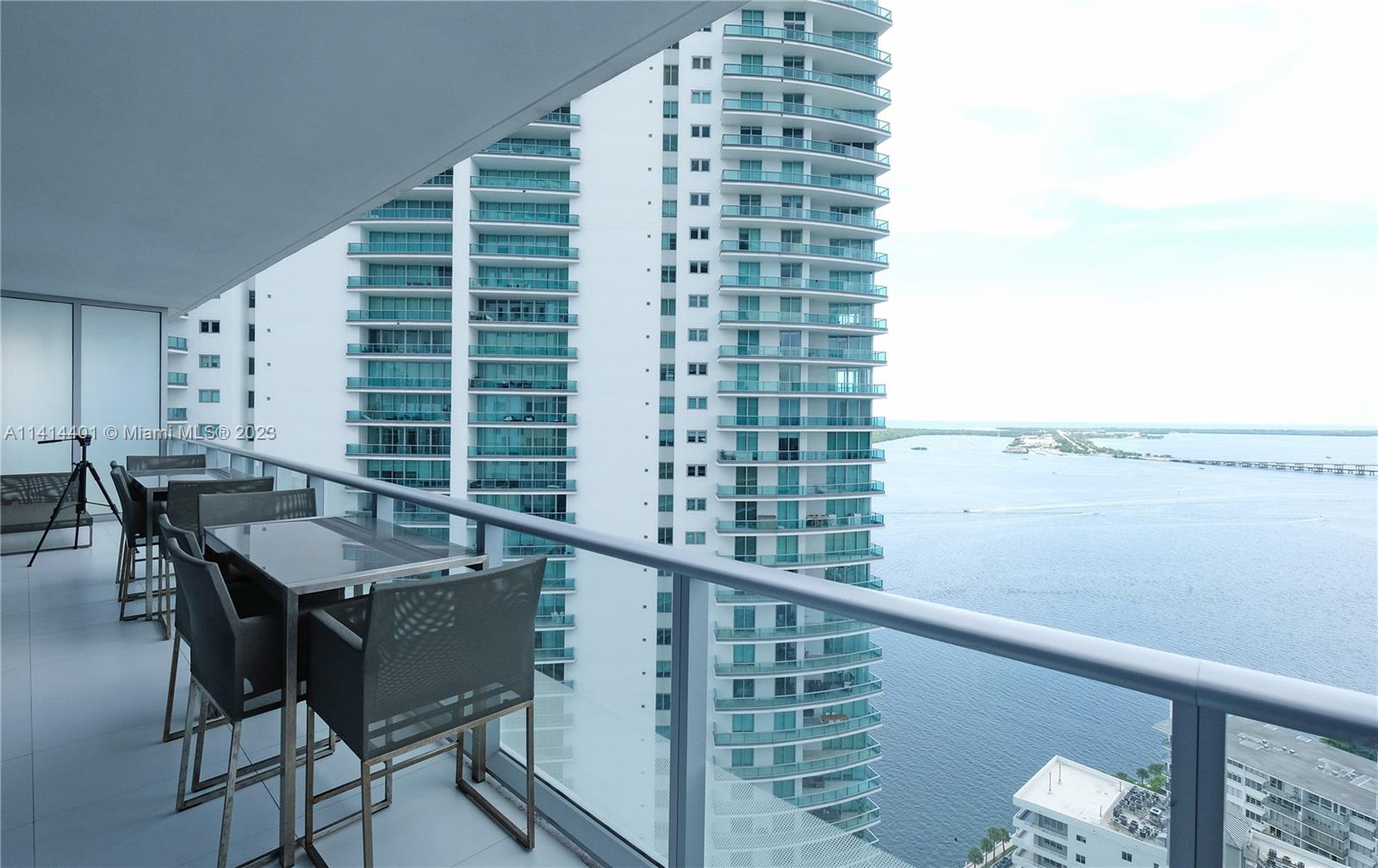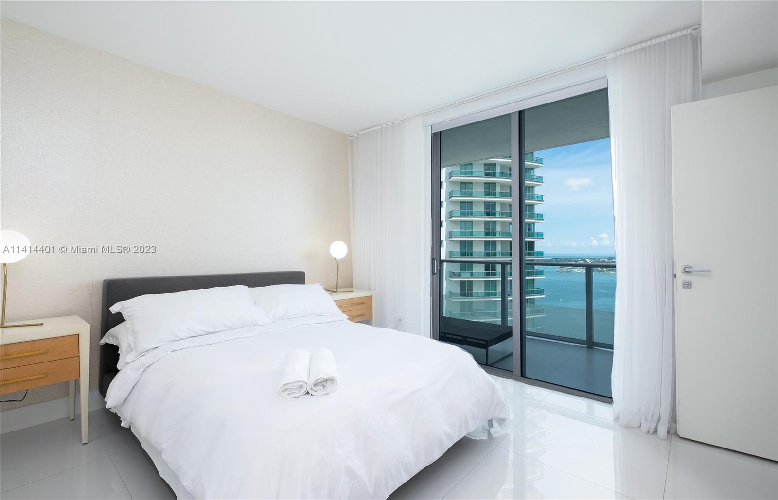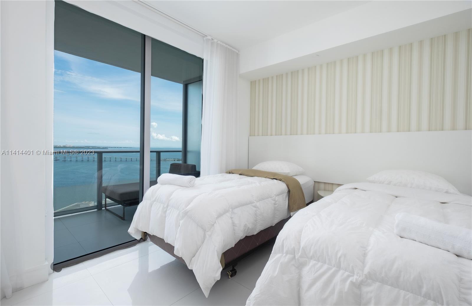 Rarely available line 05 with direct views to beautiful Biscayne Bay! Fully furnished 2 bed + den (converted into 3rd bed) with high end furniture. This unit has floor-to-ceiling windows with bay views and a huge balcony stretching all the way from the master bedroom to the living room. Huge walk-in closets in both rooms. Resort style amenities include 2 pools, cabanas, BBQ area, club room, kids lounge, family areas, 24 hr concierge and security, valet, and a welcoming lobby. Fully equipped state-of-the-art fitness center and private owners lounge with event bar and catering kitchen, theater, and spa. The unit is perfect for end users or investors as the building allows 30 day minimum rental. Please allow 24 hrs to schedule showings.