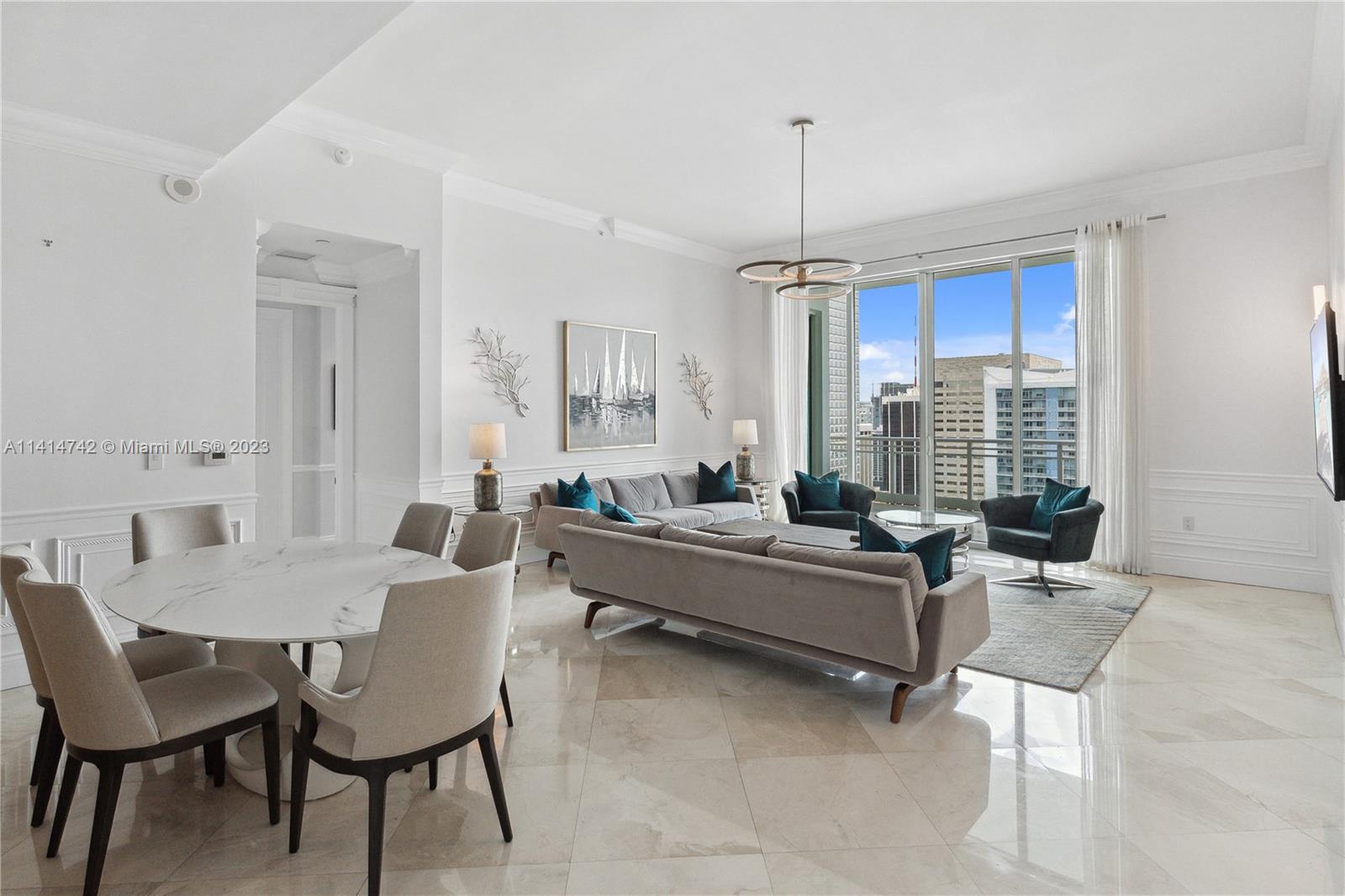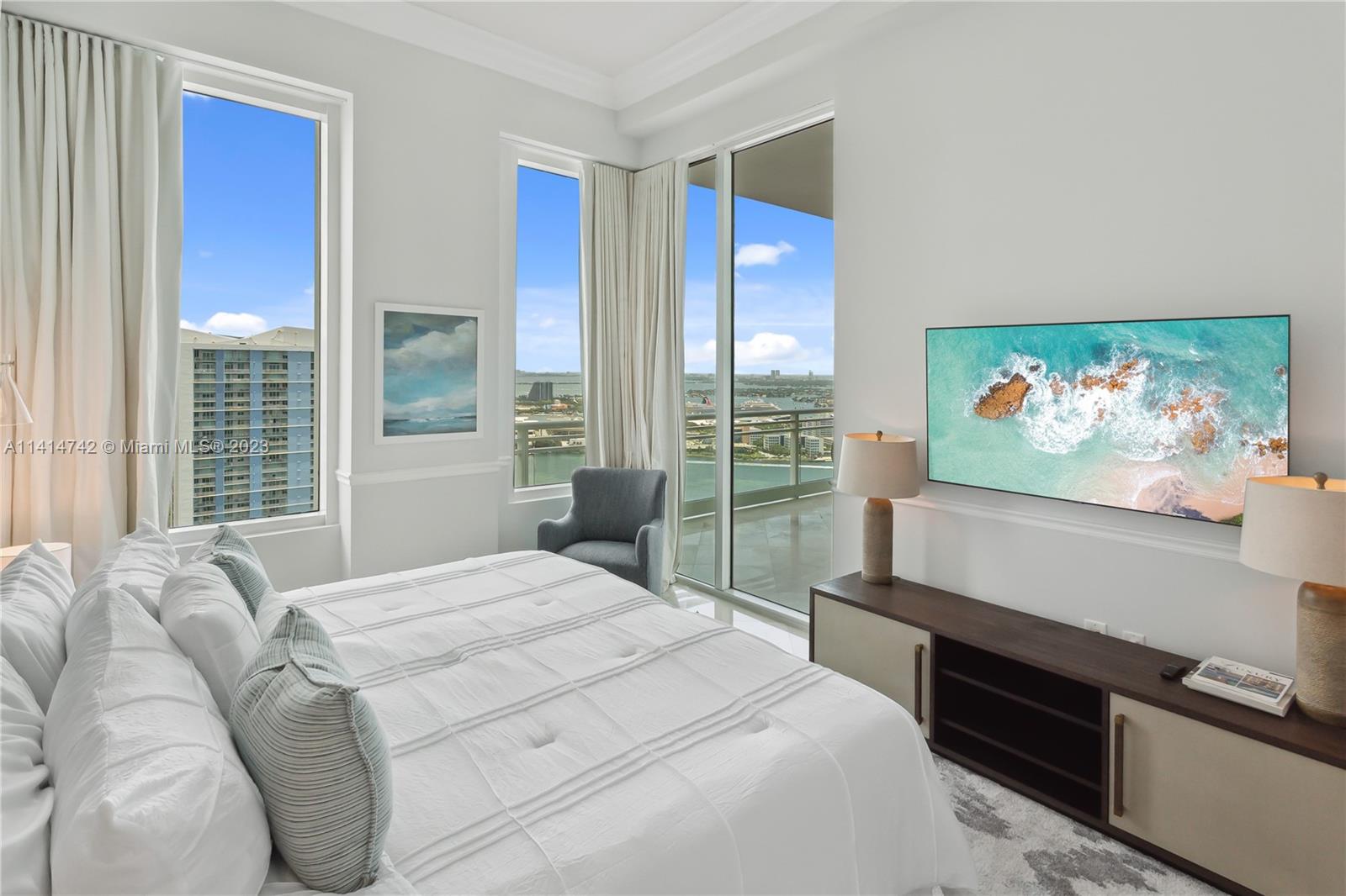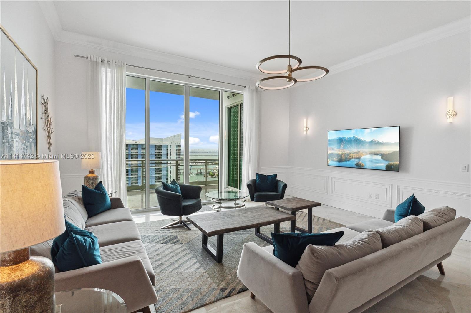 BEST PRICED 2 Bedroom at Asia, Brickell Key's top building. This is the HIGHEST 02 line in the building just below the Penthouse and comes fully furnished. 12 foot ceilings oversized balcony with the BEST views of Miami. Split floorplan with 2 oversized bedrooms with walk in closets. Master bath w/ Double sinks, Jacuzzi, Marble shower. Unit includes Gourmet Kitchen w/ Sub-zero & Miele appliances, upgraded Lighting throughout, beautiful crown molding, added interior storage room, & upgraded washer/dryer. The unit comes with 2 Parking Spaces, Private Fingerprint Elevator to the unit's Foyer & stunning views of the Bay/Miami River/Port/Ocean & Downtown. Enjoy the relaxing island living with the 5 Star Mandarin Oriental, Restaurants, but still be walking distance to Miami's urban core.