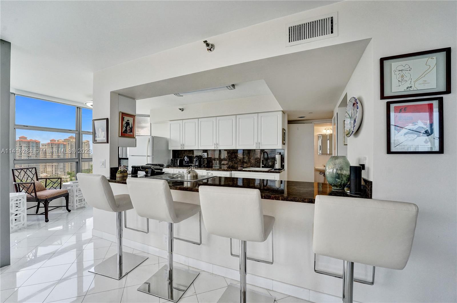 Panoramic south & SE views of the Ocean, intracoastal & Skyline from inside this corner unit, some golf course views. Desirable "line 04", rarely comes on the market! This home features, marble floors, smooth ceilings, kitchen opens to dining rm. w/impressive water views, electric shades in living, dining & kitchen. Granite counters & backsplash with white cabinets. Wraparound balcony. Mystic Pointe Tower 600 - pool, Jacuzzi, BBQ area, gym, game room, community party room & playground. Walk to Aventura Mall, Founder’s Park, houses of worship and the Beach. Mystic Pointe, an all-inclusive community providing an active lifestyle with 7 lighted clay tennis court, four lit Pickleball courts, paths along the bay, playground, dry cleaning, mini market, restaurant, salon, dog-park & marina.