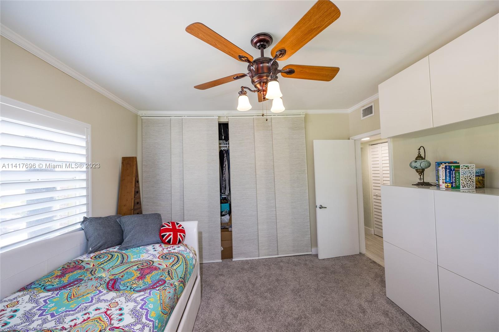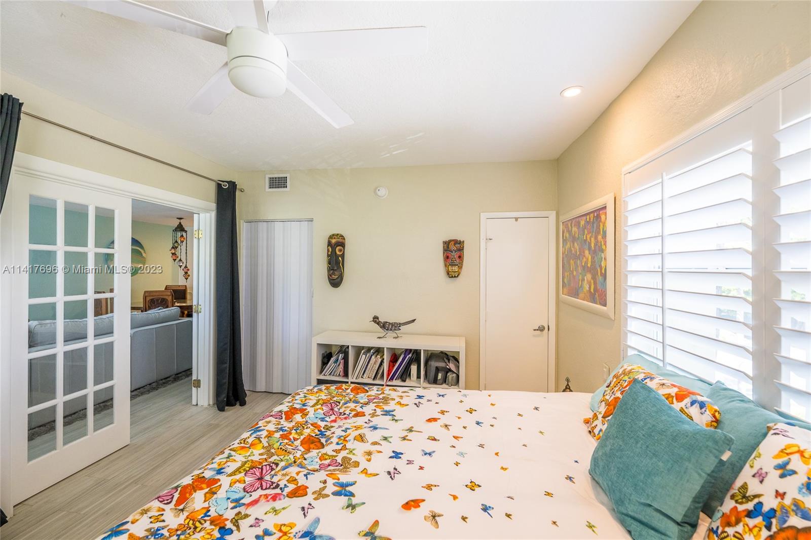 Waterfront corner unit in a 2-storey art deco building for sale in a quiet Normandy Isle neighborhood. This 2 bedroom, 2 bath condo is completely updated with state-of-the-art kitchen and LG appliances, including washer/dryer. Both bathrooms are modern with Shower Panel Tower Systems and rainfall shower heads, and bedrooms are large with plenty of storage room and built-in wall units. The condo has a Spanish porcelain tile floor and white Florida shutters throughout, and the courtyard features a pool, BBQ area and a deck with loungers. Shops, restaurants and churches are within a 7-minute walk and the beach is a 15-minute walk away.