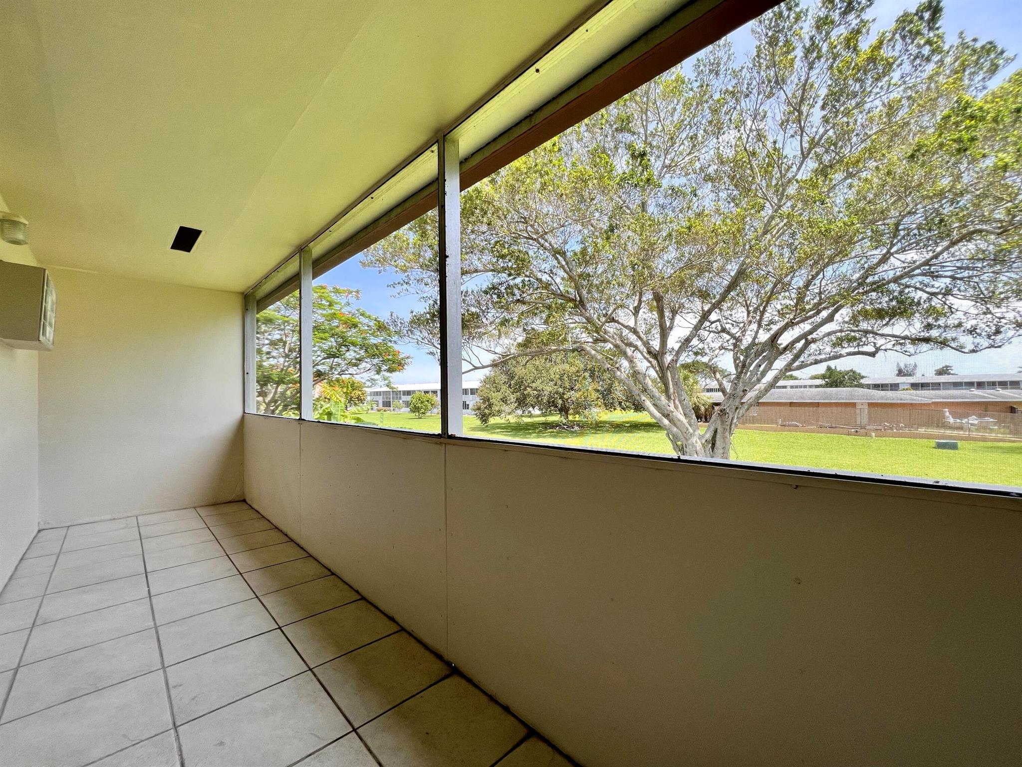 A Lovely Spot To Call Home In 55+ Century Village! Wonderful 1/1.5 floor plan that lives large. Neutral tile flooring throughout. Kitchen & baths have updates. Spacious bedroom suite with full ensuite bath with step-in shower, wall of closets, and access to the long lanai. The building has a lift and lovely mature trees and landscaping. The popular Kent pool is right around the corner.Century Village is a 55+ community with so much to offer...