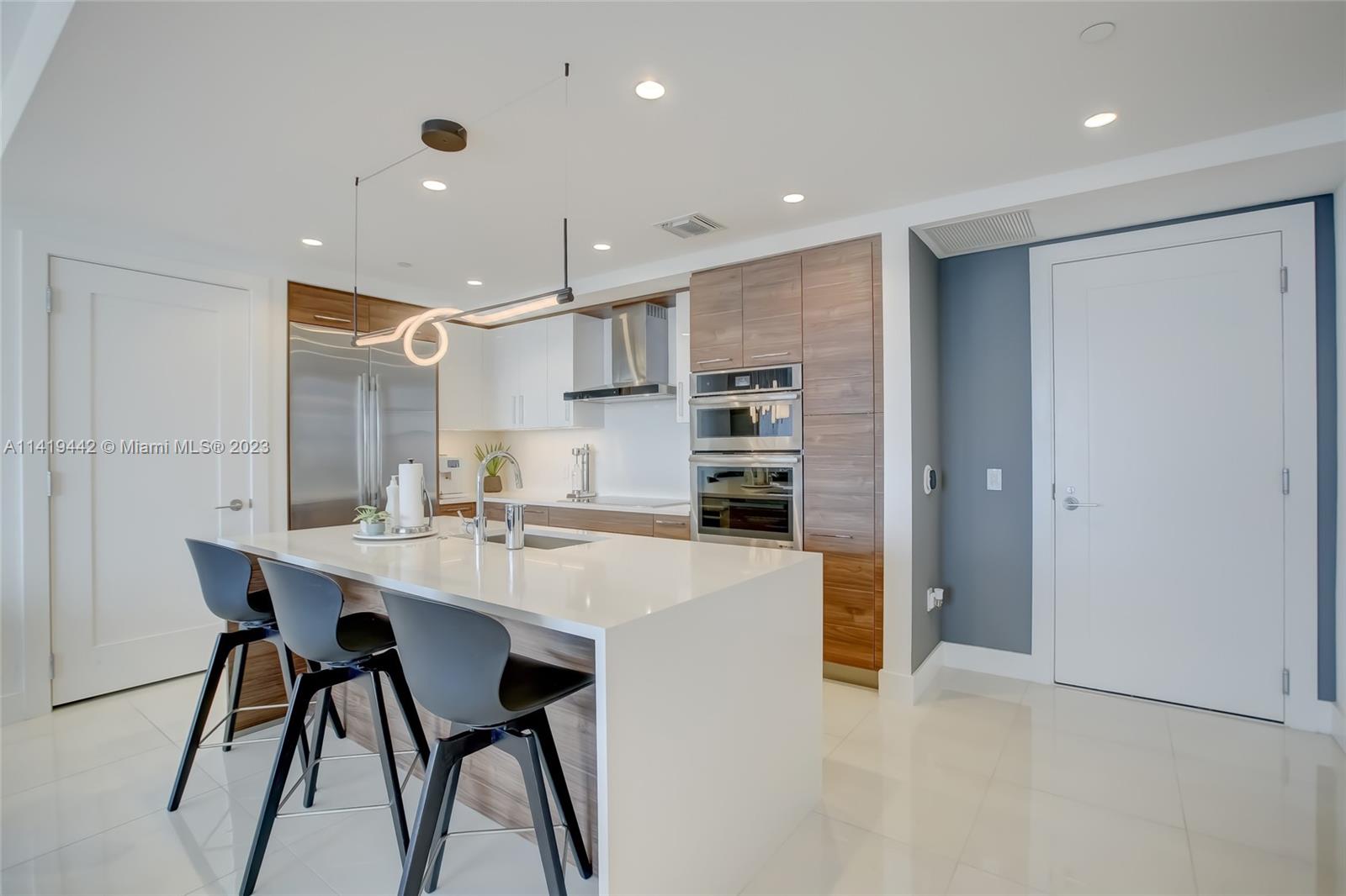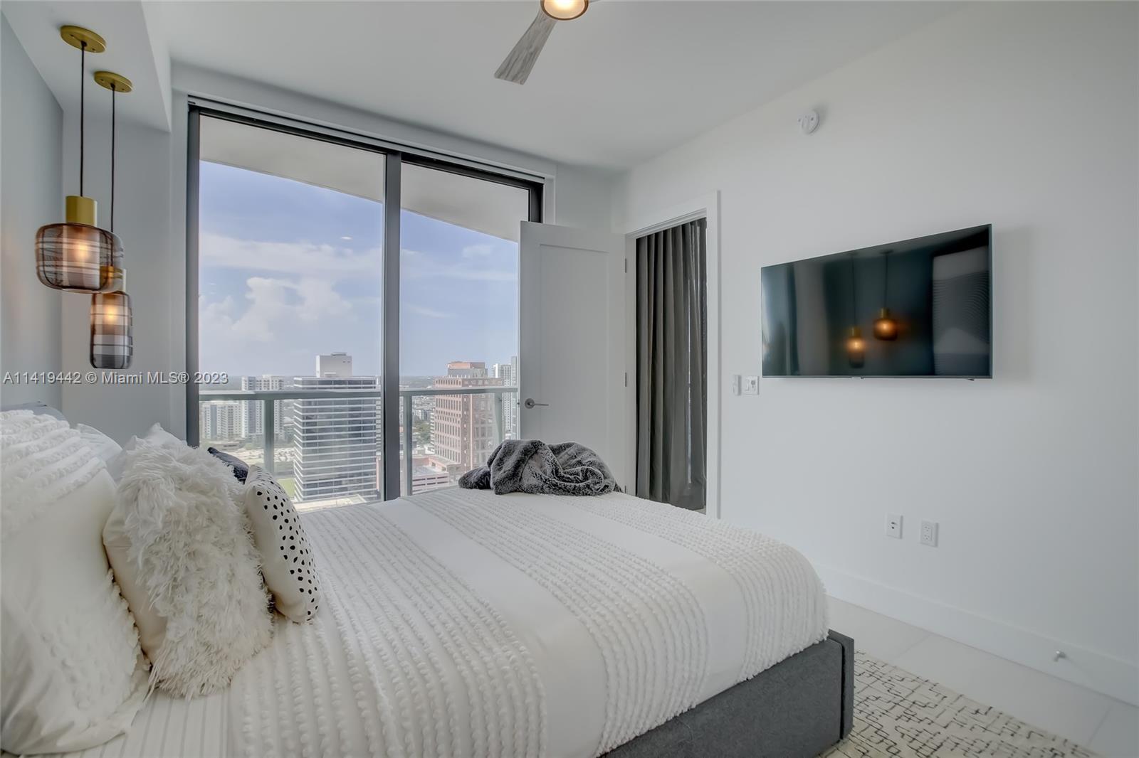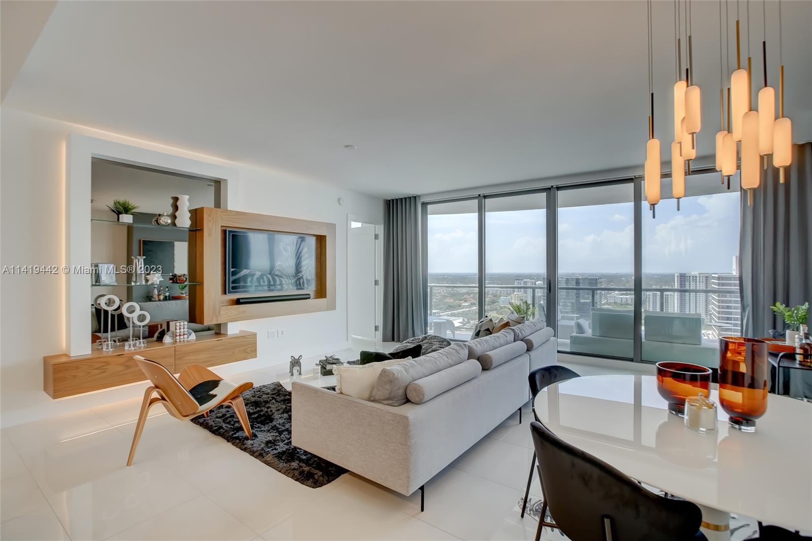 Absolute best downtown address! Breathtaking views featuring floor-to-ceiling windows. Unit features 2bd/2.5 baths + office/den with an open layout, porcelain tile throughout, & all windows feature motorized shades. Kitchen equipped w/ Nolte Euro cabinetry, Jenn-Air stainless appliances, & quartz countertops. Upgrades include a full quartz backsplash, wine cooler, & custom-made closets. Unit sold fully furnished & turn-key ready! Parking includes 2 side-by-side garage spaces w/ EV charging (VERY RARE)! 100 Las Olas is the tallest building in Ft. Lauderdale w/ 46 stories & only 113 residences. Five-star resort-style amenities; rooftop pool, cabanas, fitness center, grills, club room, restaurants, 24hr doorman/security, & valet service. Rapid HOA approval. You don't want to miss this unit!
