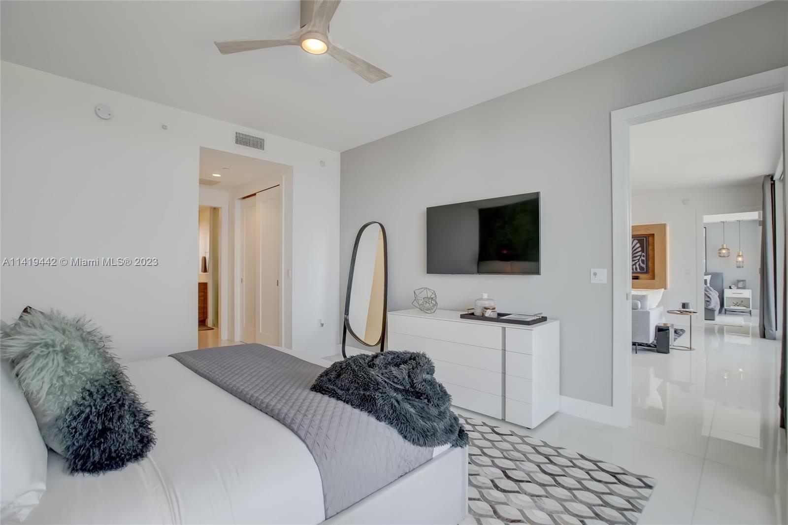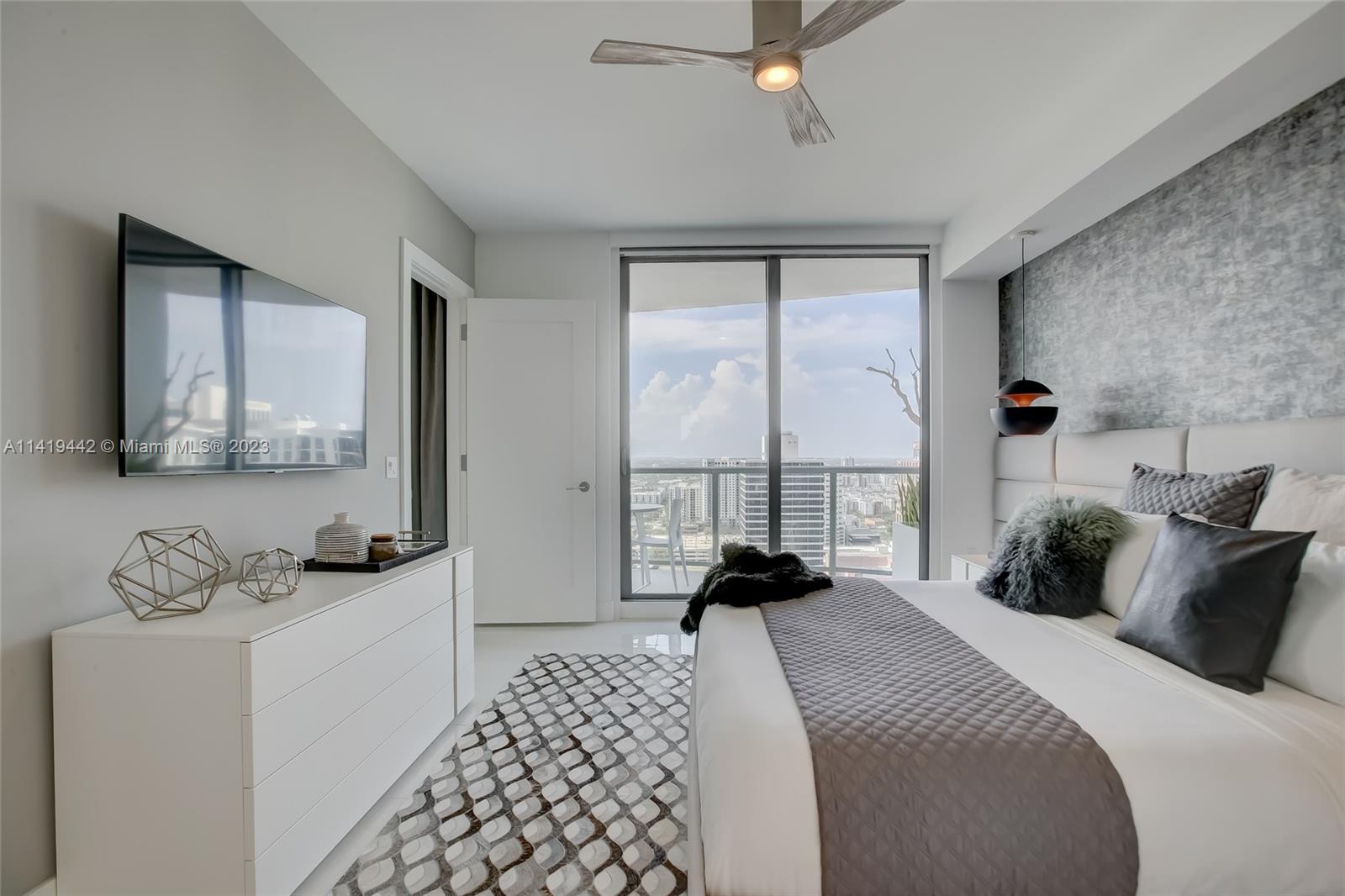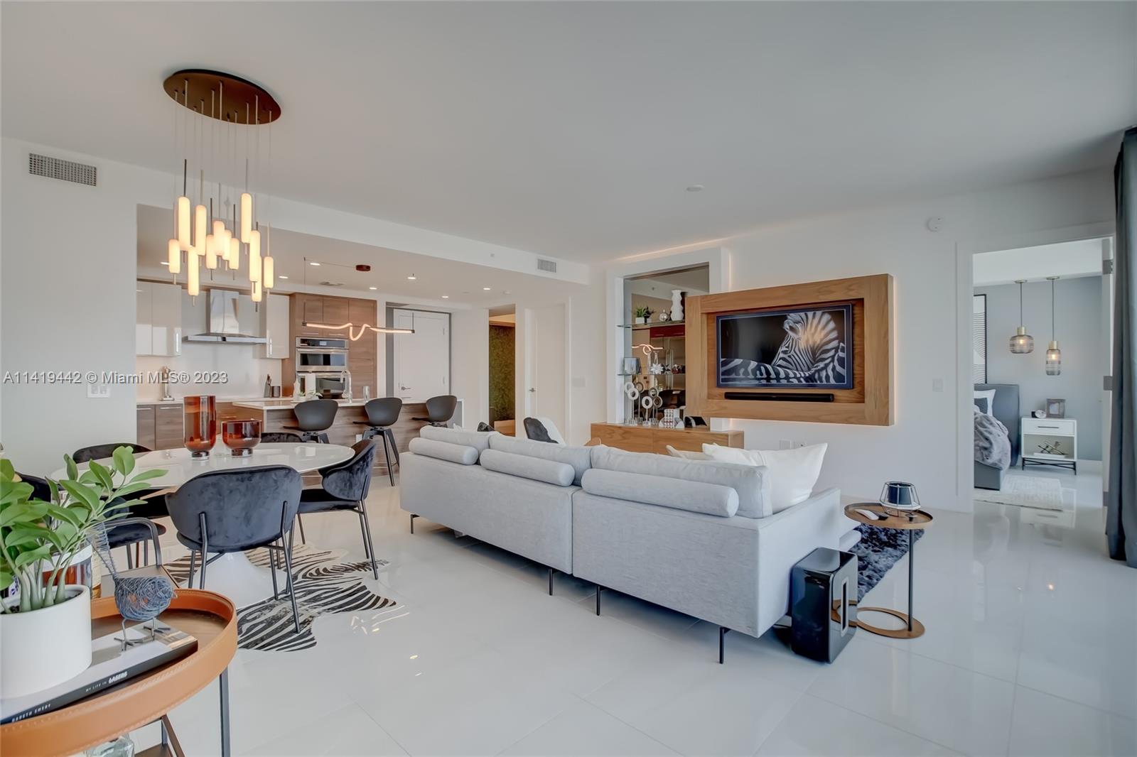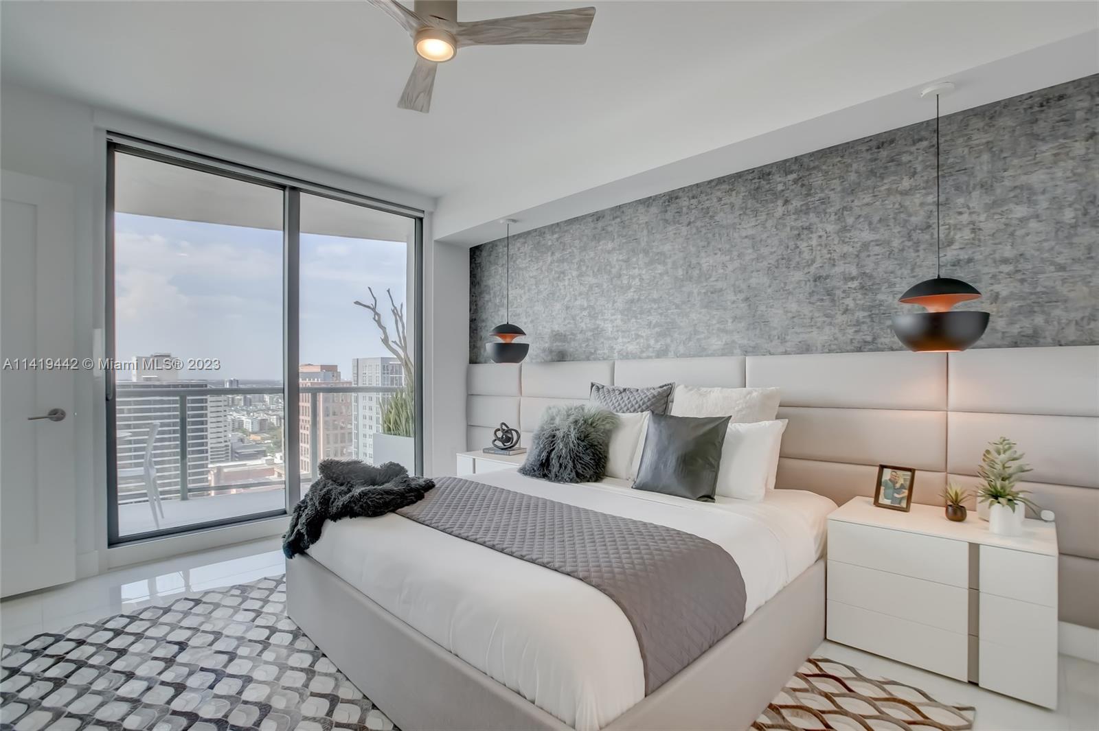 Absolute best downtown address! Breathtaking views featuring floor-to-ceiling windows. Unit features 2bd/2.5 baths + office/den with an open layout, porcelain tile throughout, & all windows feature motorized shades. Kitchen equipped w/ Nolte Euro cabinetry, Jenn-Air stainless appliances, & quartz countertops. Upgrades include a full quartz backsplash, wine cooler, & custom-made closets. Unit sold fully furnished & turn-key ready! Parking includes 2 side-by-side garage spaces w/ EV charging (VERY RARE)! 100 Las Olas is the tallest building in Ft. Lauderdale w/ 46 stories & only 113 residences. Five-star resort-style amenities; rooftop pool, cabanas, fitness center, grills, club room, restaurants, 24hr doorman/security, & valet service. Rapid HOA approval. You don't want to miss this unit!