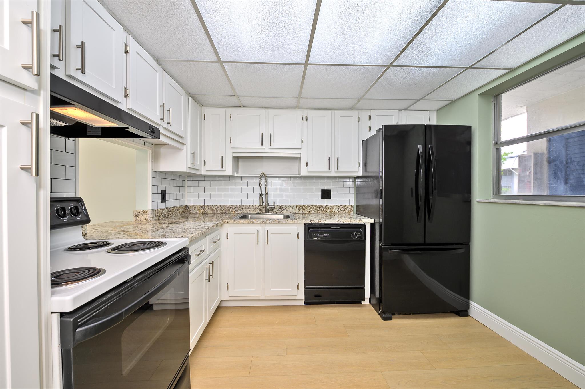 Welcome to this spacious condo in the heart of Coral Springs. Kitchen equipped with with Shaker cabinets and granite counters. Brand new Laminate floors and fresh paint create an open concept feel in the main living area. Huge balcony across back of the unit, perfect for additional living space. Accordion shutters protect the sliders during times of need. Large master has walk-in closet plus a full wall of extra closet space. Park right near your door and take the steps of elevator. The a/c is newer (2016) and there is a tankless WH. The entire complex has been updated with a newer roof, new paint, reinforced balconies and new railings not long ago. A short walk brings you to the pool or tennis courts. All ages welcome and 2 small pets allowed!