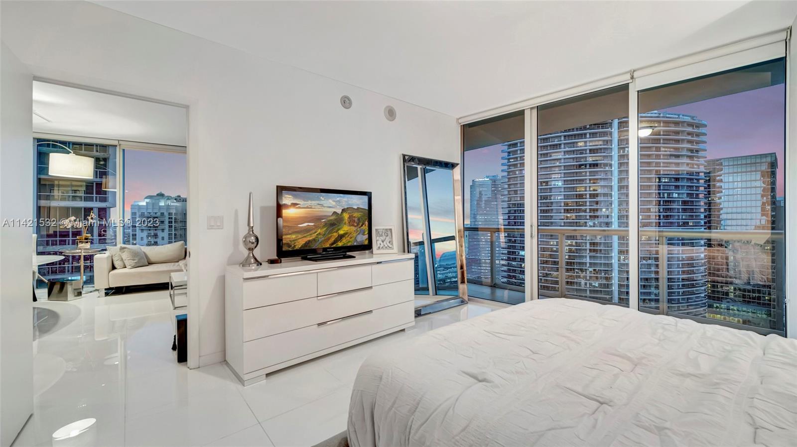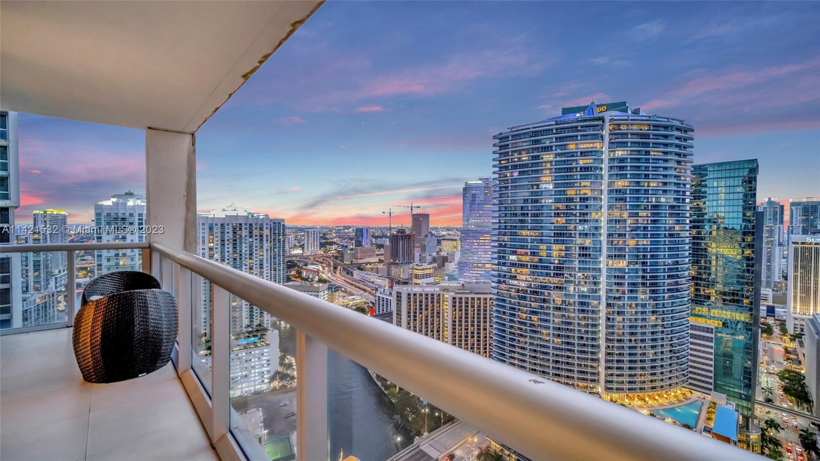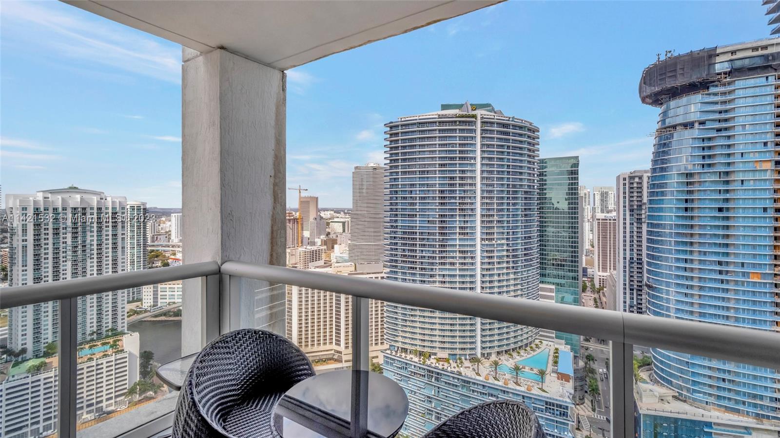 Indulge in the epitome of luxury living with this extraordinary corner unit, boasting mesmerizing water and city views. Floor-to-ceiling windows flood the interior with natural light, creating an ambiance of elegance. Step onto the balcony and immerse yourself in the captivating bay, river, and Miami skyline views.The kitchen features high-end Wolf and Sub-Zero appliances, complemented by European cabinetry and pristine white porcelain tiles. Enjoy modern comforts with a new A/C system, convenient washer/dryer, and stylish accent walls throughout. The Icon offers unparalleled amenities, including a state-of-the-art fitness center, an ultra-luxurious spa, and an expansive pool deck with fine dining options, private cabanas, and impeccable poolside service. Furniture negotiable!