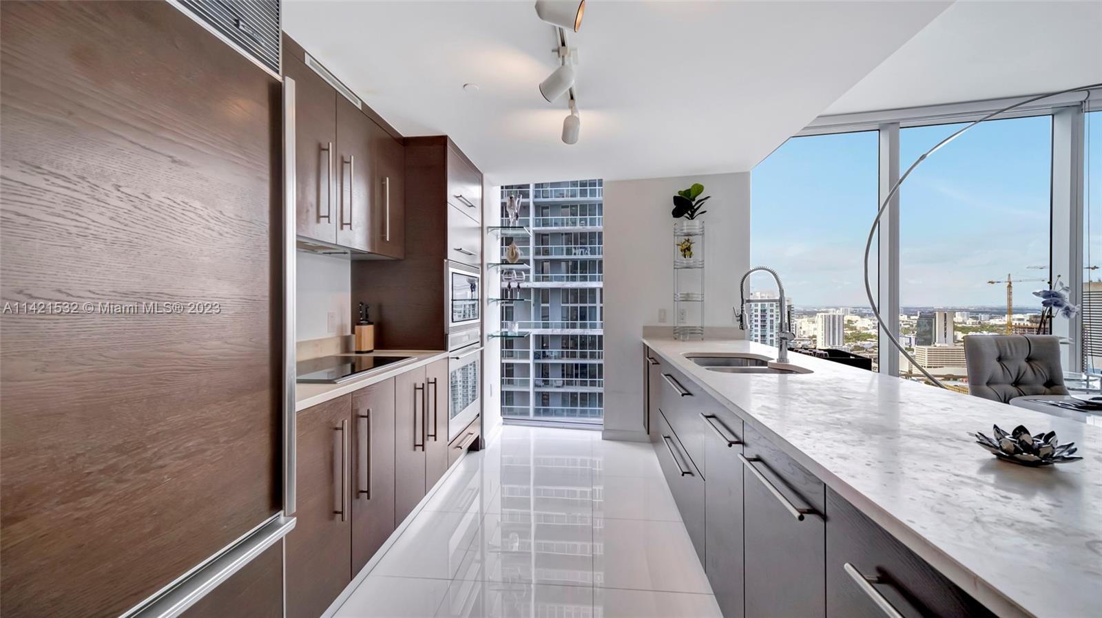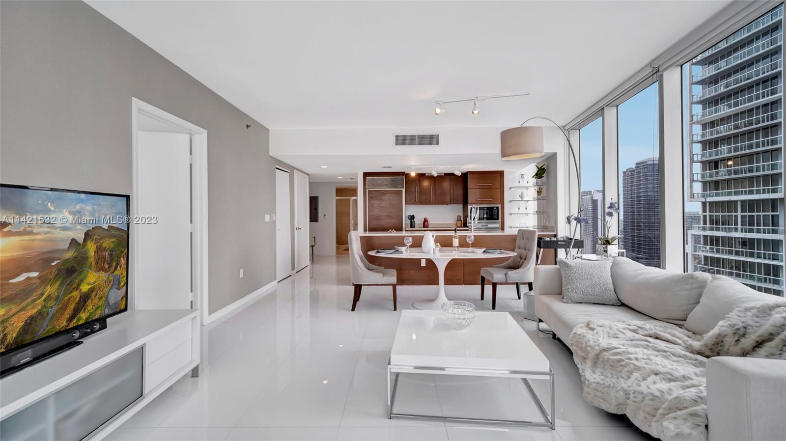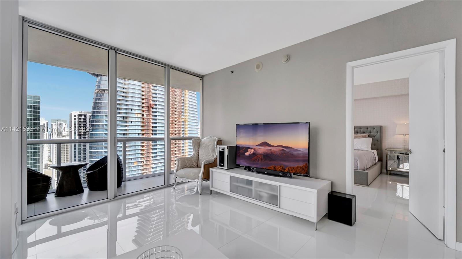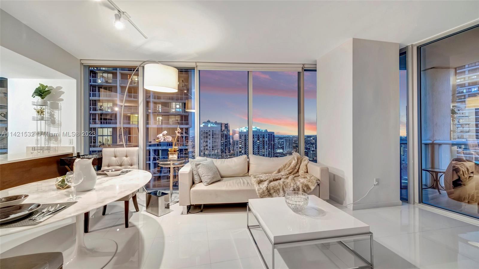 Indulge in the epitome of luxury living with this extraordinary corner unit, boasting mesmerizing water and city views. Floor-to-ceiling windows flood the interior with natural light, creating an ambiance of elegance. Step onto the balcony and immerse yourself in the captivating bay, river, and Miami skyline views.The kitchen features high-end Wolf and Sub-Zero appliances, complemented by European cabinetry and pristine white porcelain tiles. Enjoy modern comforts with a new A/C system, convenient washer/dryer, and stylish accent walls throughout. The Icon offers unparalleled amenities, including a state-of-the-art fitness center, an ultra-luxurious spa, and an expansive pool deck with fine dining options, private cabanas, and impeccable poolside service. Furniture negotiable!