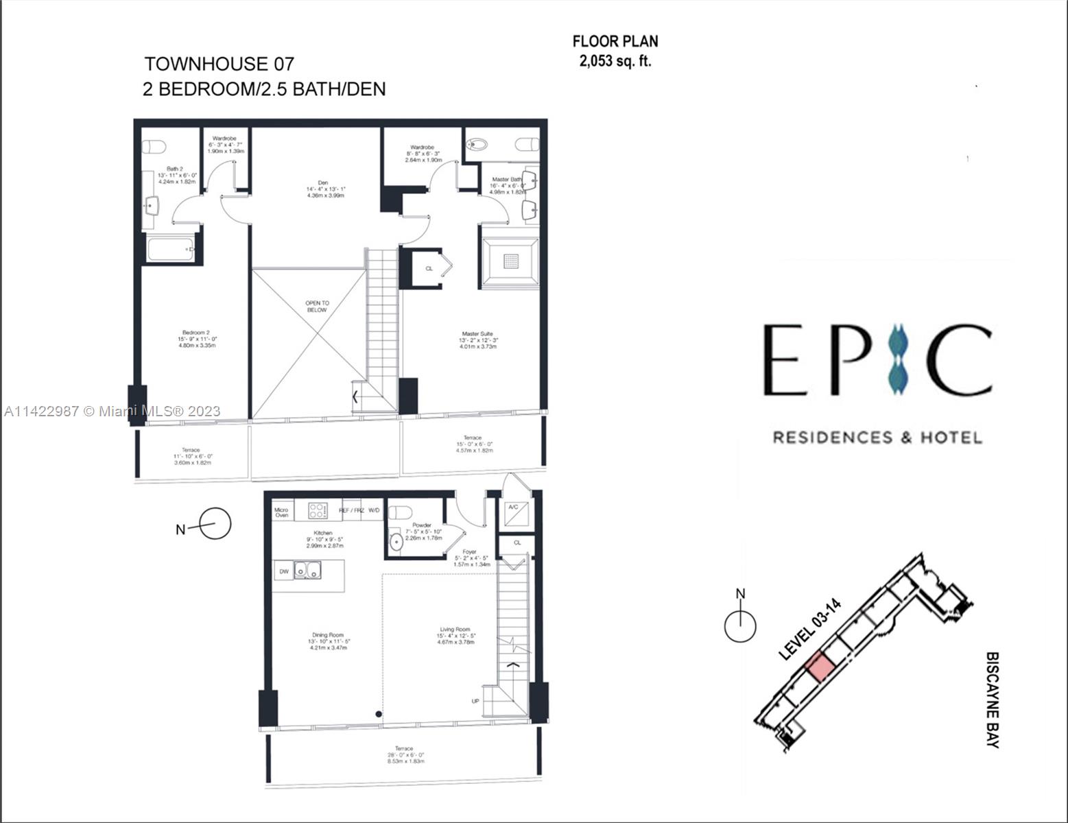 Incredible opportunity to own two story townhome at EPIC Residence . This is Ugo Columbo’s luxury addition to the Miami Skyline. is without a doubt the best 2-story apartment. With 20' ceilings, the spacious and elegant 2 bed , 2.5 bath + DEN in 1,724 SF + terrace 324 SF is situated in a premium location with top-of-the-line appliances, beautiful modern finishes and same level parking as unit along with unlimited valet parking available. The apartment features floor-to-ceiling glass windows, and a private balcony with glass railings. Located where the Miami River meets Biscayne Bay, Atlantic Ocean, and city skyline. Everything is just minutes away from your doorstep. You won’t be disappointed to live in this Epic building.