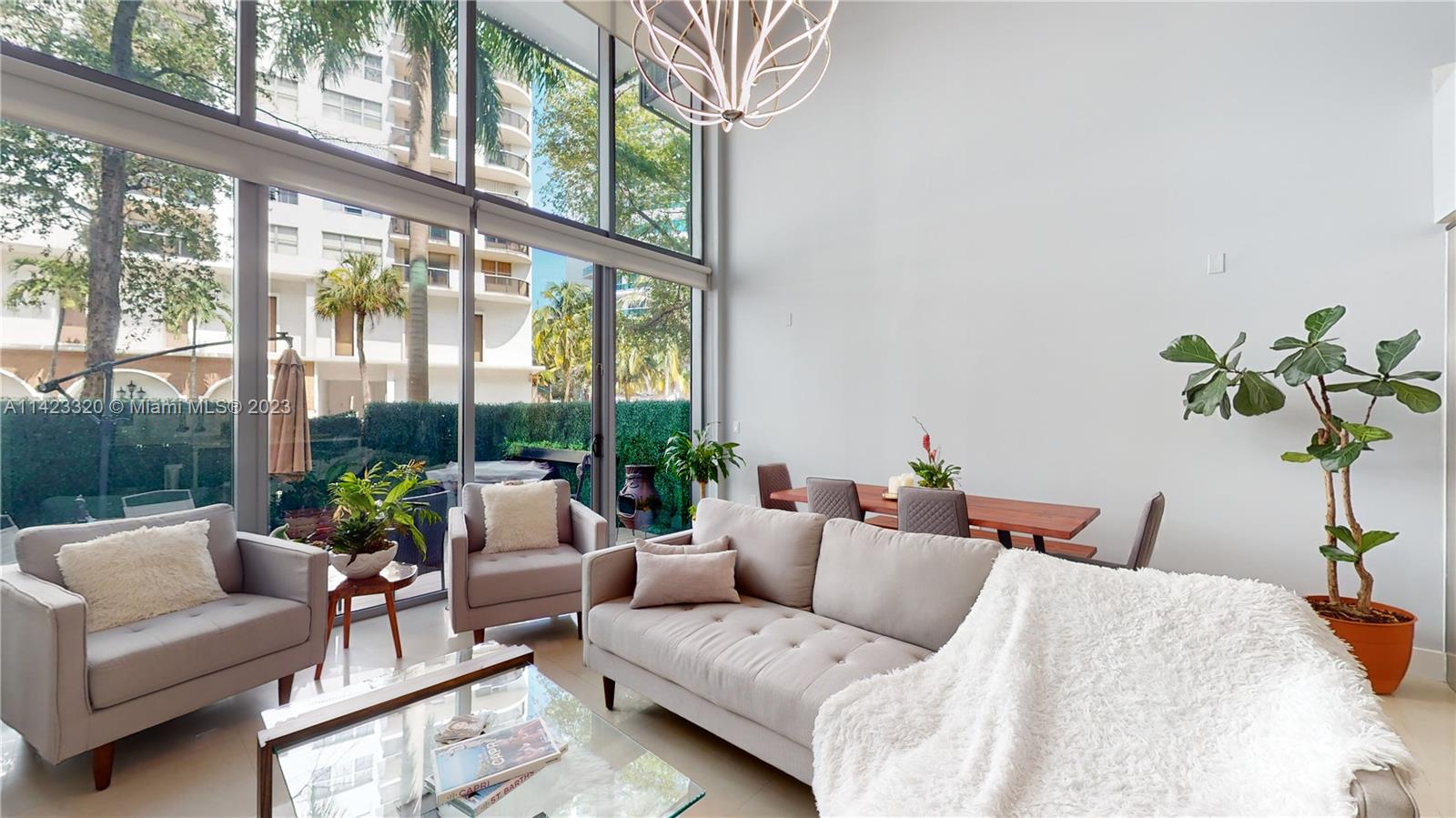 Turnkey freshly painted, luxurious remodeled condo, unique amongst it's kind. Featuring 2 Bedrooms + Den (converted to the 3rd bedroom), with 2 stories boasting airy 18 ft+ floor-to-ceiling glass, allowing for ample natural light. The unit features top-of-the-line European kitchens, large master with walk-in closet, tankless water heater, enclosed hidden patio, and 2 parking spots w/Electrical charger set-up (spot can be rented at premium). A desired line with incredible finishes and calming amenities. Imagine a Zen Garden just outside your door! You can enjoy the gym, heated pool, business center with 24/7 access and Wifi for a change of scenery. One block from the Ocean with access through the bike path. Make this your home today! *Videos/Matterport Available*