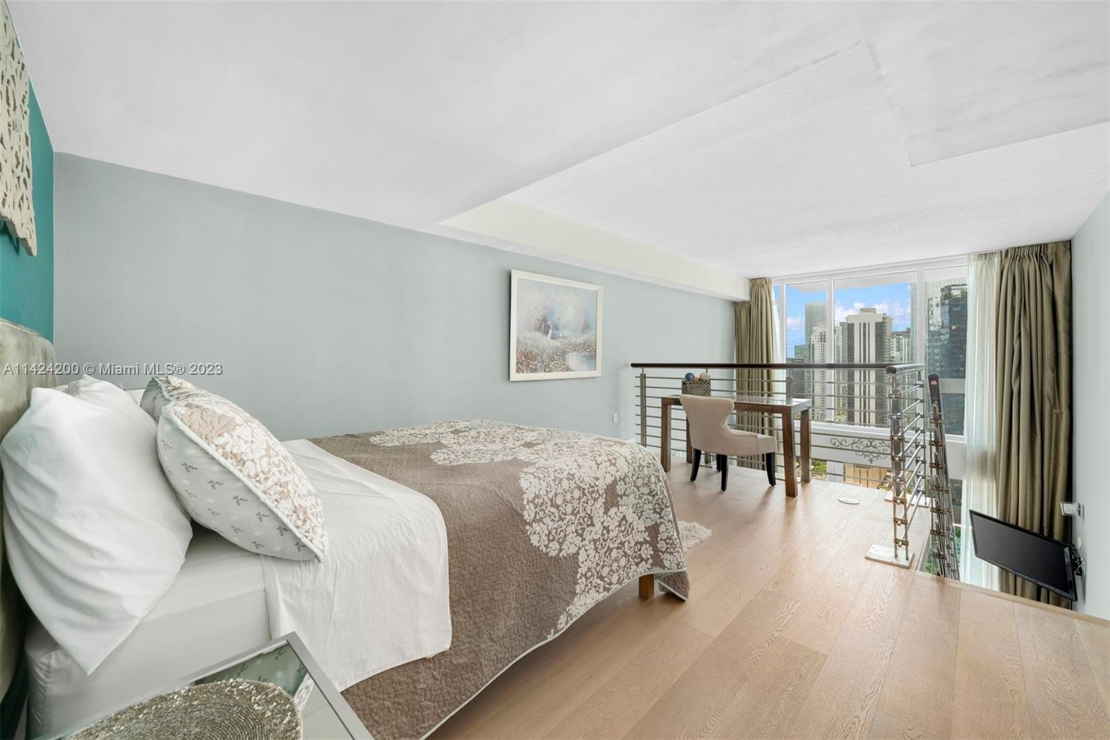 A turnkey furnished 1 Bed/1.5 Bath loft at Brickell on the River South w/ a renovated kitchen, stainless steel kitchen appliances, wood flooring throughout, Jacuzzi bathtub, in-unit washer & dryer, large walk-in closet, and double-height ceilings w/ floor-to-ceiling glass windows overlooking the city skyline from 42nd floor. Includes one assigned parking space on the 1st floor and all furnishings, electronics, dishware, and linens. Airbnb/short-term rentals allowed (no minimum rental period). Amenities include 2 pools; a 3-story fitness center; spa w/ men's & women's sauna, steam room, and whirlpool; conference room, business center, party room, 24-hour valet parking, and 24-hour concierge & security. Steps from the MetroMover and an array of high-end shops, restaurants, and entertainment.