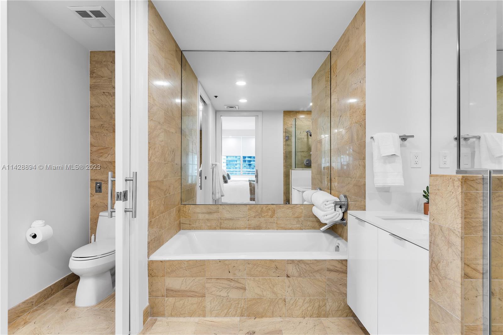 FULLY REMODEL / FURNISHED Large 2 Bedroom 2 Bath (1,388 SF). Beautiful Views on the City Skyline and Bay. No Rental Restrictions. Balcony with water views, ceramic floors and marble baths. Unit comes with 2 parking + Valet. Washer/ Dryer in Unit. Centrally located in the heart of vibrant Brickell District, within walking distance to everything. Experience the luxury service: Spa, Pool, 24 HR valet and concierge and more... Easy to Show. Contact Listing agent.