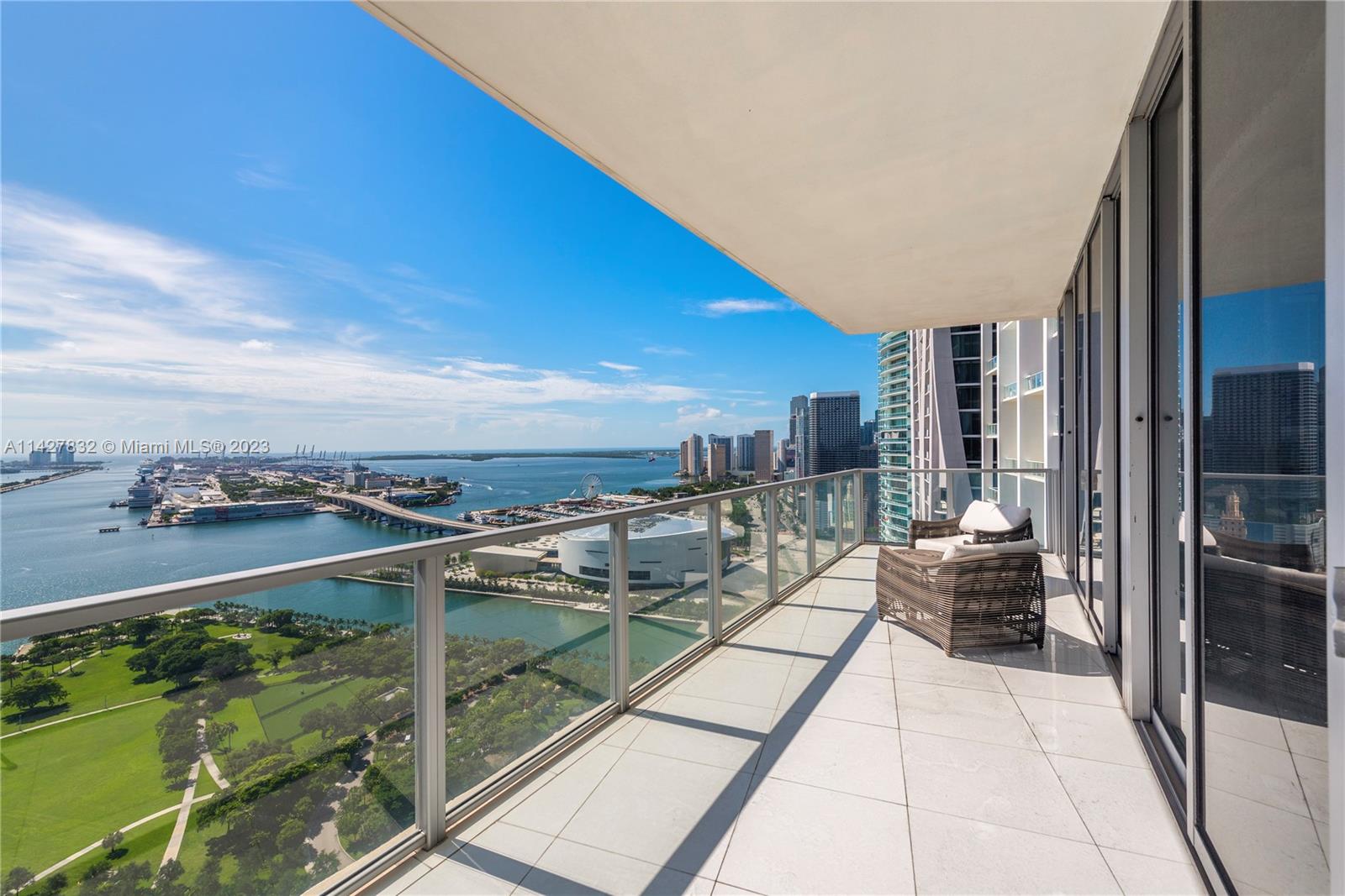 Prized high floor SE corner unit, dramatic views of Biscayne Bay and the Atlantic Ocean. This tastefully custom designed unit is a 3 bedroom 2 ½ bath with a private elevator. Full Amenity, True luxury building, in the most dynamic area of Downtown Miami, steps to Adrien Arsht Center, The Museums, and the oncoming Miami Worldcenter. Tremendous Value Pricing on this unit. Easy to show!