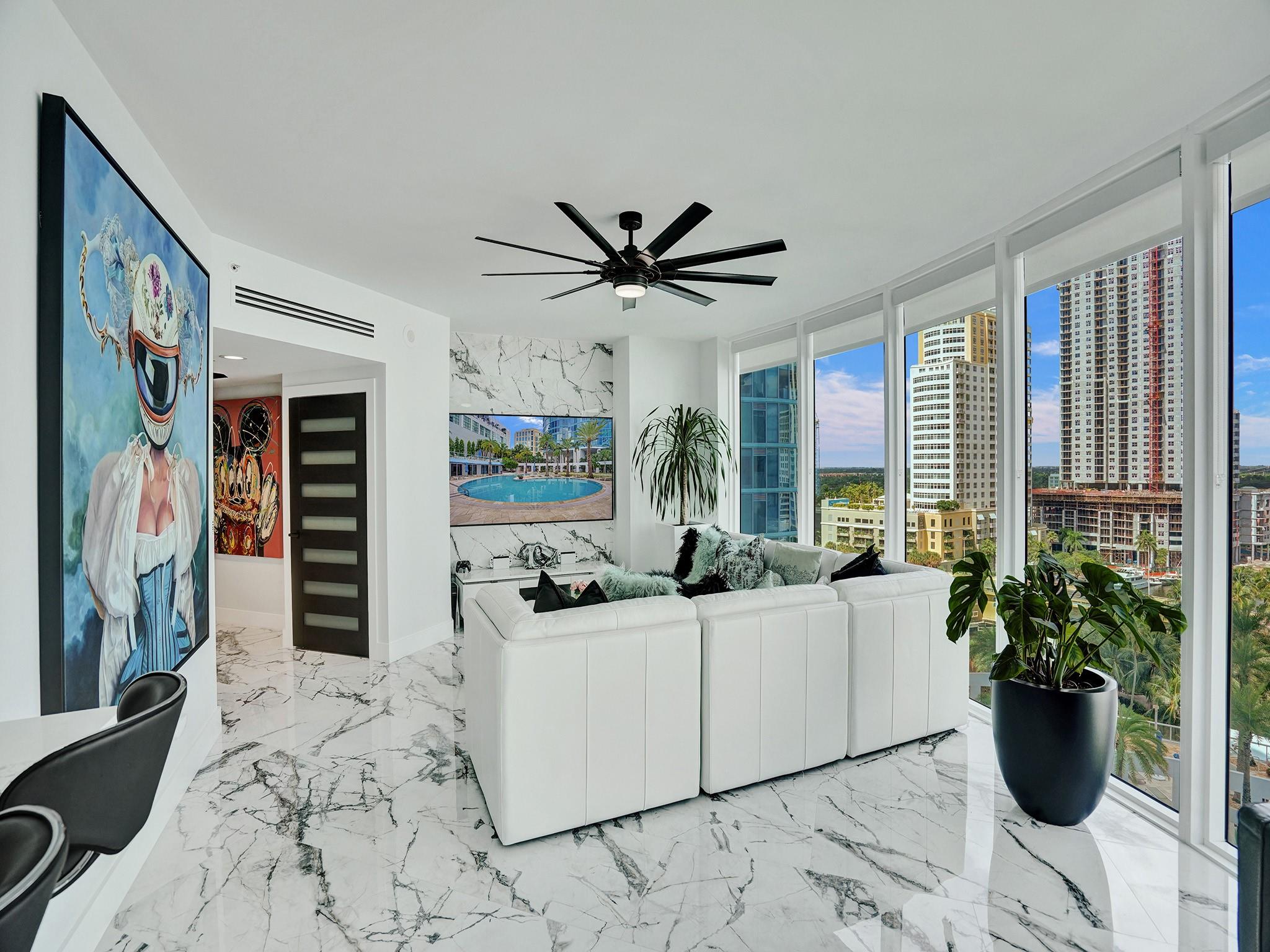 Highly sought-after Chelsea floor plan in the Las Olas River House, with extraordinary features. This luxurious residence boasts a 241 sq ft balcony, granite countertops with backsplash, exquisite porcelain tile throughout, LED lighting in every room, & meticulous attention to detail. The master bath offers a modern oasis, while the 2nd bedroom functions as a 2nd suite with added windows. Enjoy custom doors, cabinets, and lighting, along with 1-year old appliances & 3 year-old AC. Amenities include built-in wine cooler with dual-zone temperature, electronic toilets in each bathroom, Badeloft sinks, 9ft ceilings, & floor-to-ceiling windows showcasing RIVER & POOL views. Experience around-the-clock security, concierge services, & access to a world-class gym, steam rooms, & serene spa areas.