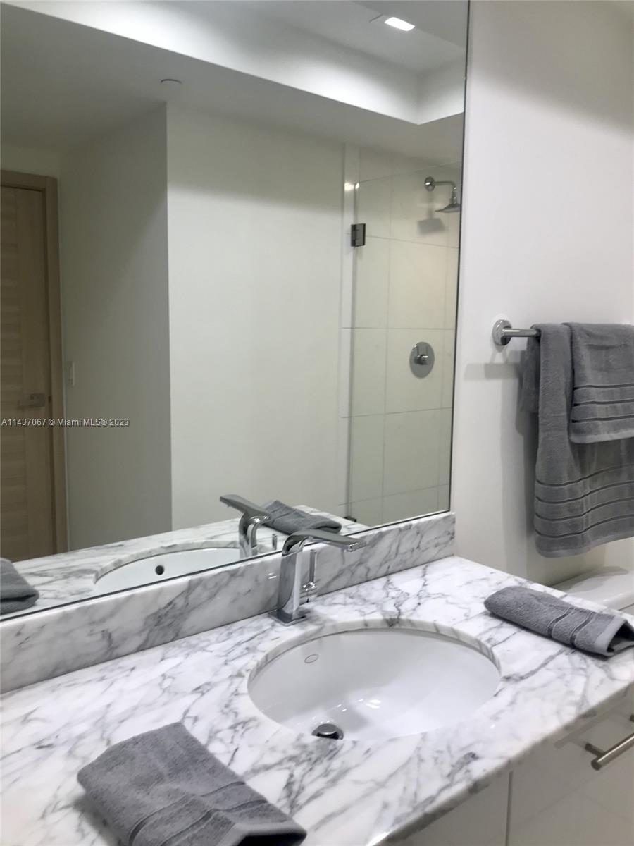 EXCEPTIONAL RENOVATED UNIT AND BEST IN LINE IN THE BUILDING! STUNNING UNIT, 2BD/ 2 BATH. BREATHTAKING VIEWS, FACING THE RIVER AND MIAMI SKYLINE. CUSTOM MADE ITALIAN DOORS. HIGH END MARBLE FLOORS, THROUGHOUT AND STATE OF THE ART LED LIGHTING, INCLUDES MODERM PROFESSIONALLY INSTALLED SHADES WITH BLACKOUTS ON BOTH BEDROOMS. A MODERN TAILORED MADE WALL UNIT AND EUROPEAN LUXURY FAUCETS. CUSTOM CLOSET DOORS AND WALK-IN CLOSETS. 1 COVERED PARKING LOT WITH TRANSPONDER. SPLIT PLAN CAN ACCESS BALCONY FROM BEDROOM AND SOCIAL AREA. LOTS OF NATURAL LIGHT. SEPARATE SHOWER AND JACUZZI. 500 BRICKELL OFFERS LOTS OF AMENITIES LIKE TWO SEPARATE POOLS, ONE ON THE ROOFTOP ON 43TH AND 11TH FL. FLOOR MAIN DECK POOL, SAUNA, AND HOT TUB. ULTIMATE FITNESS CENTER, PRIVATE THEATER, VALET PARKING AND 24 HOUR SECURITY.