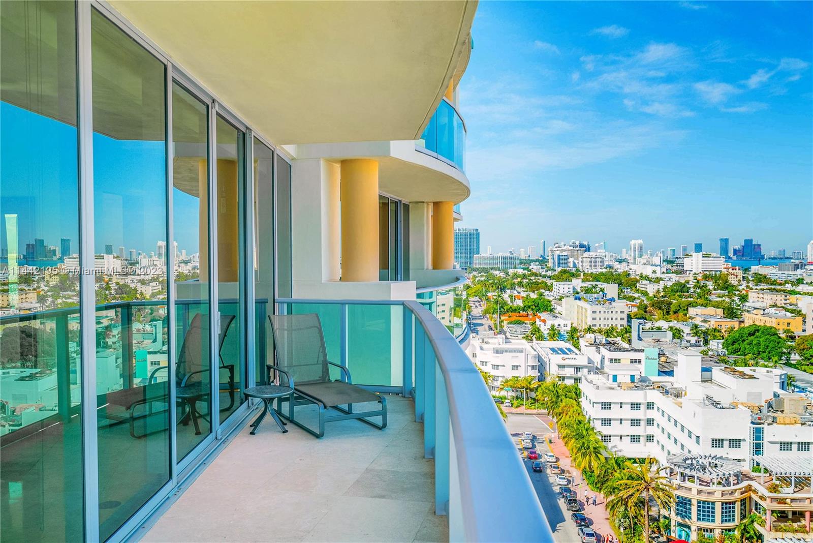 Panoramic views of Miami Beach and Atlantic Ocean are the centerpiece of this NE corner oceanfront lower Penthouse. This sanctuary of serenity features a spacious primary bedroom with a hallway of closets and two separate bathrooms, European kitchen with Subzero and Miele appliances and wraparound 10 ft. glass walls and terraces framing the ocean. The open plan creates an incredible flow of space and freedom while serving as the epicenter for hosting and entertaining. Designed by Luis Revuelta, Il Villaggio is an iconic luxury, Art Deco building situated on world-famous Ocean Drive. Il Villaggio remains at the forefront of luxury with five star amenities that include a new fitness center, concierge, 24/7 reception, valet and security, and more!