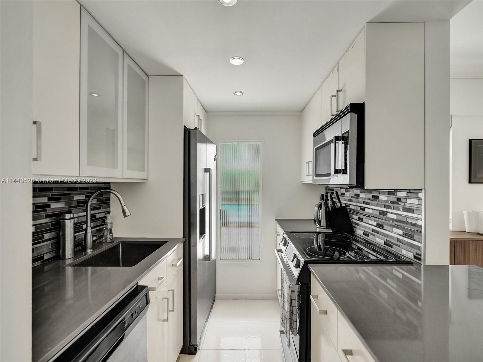 BEAUTIFULLY UPDATED CONDO 1 SHORT BLOCK FROM LINCOLN ROAD. KITCHEN AND BATHROOMS WERE UPDATED WTH NEW CABINETS AND STAINLESS STEEL APPLIANCES. THIS FLOW-THROUGH GARDEN APARTMENT OVERLOOKS THE POOL AREA AND HAS WIND IMPACT WINDOWS IN THE LIVING ROOM AND BEDROOM. THE BEDROOM HAS A BONUS ROOM WHICH CAN BE USED AS AN OFFICE OR ADDITIONAL CLOSET SPACE. 3 BLOCKS TO FLAMINGO PARK & 4 BLOCKS TO THE BEACH. INCLUDES 1 COVERED PARKING SPACE, POOL & GUEST PARKING.