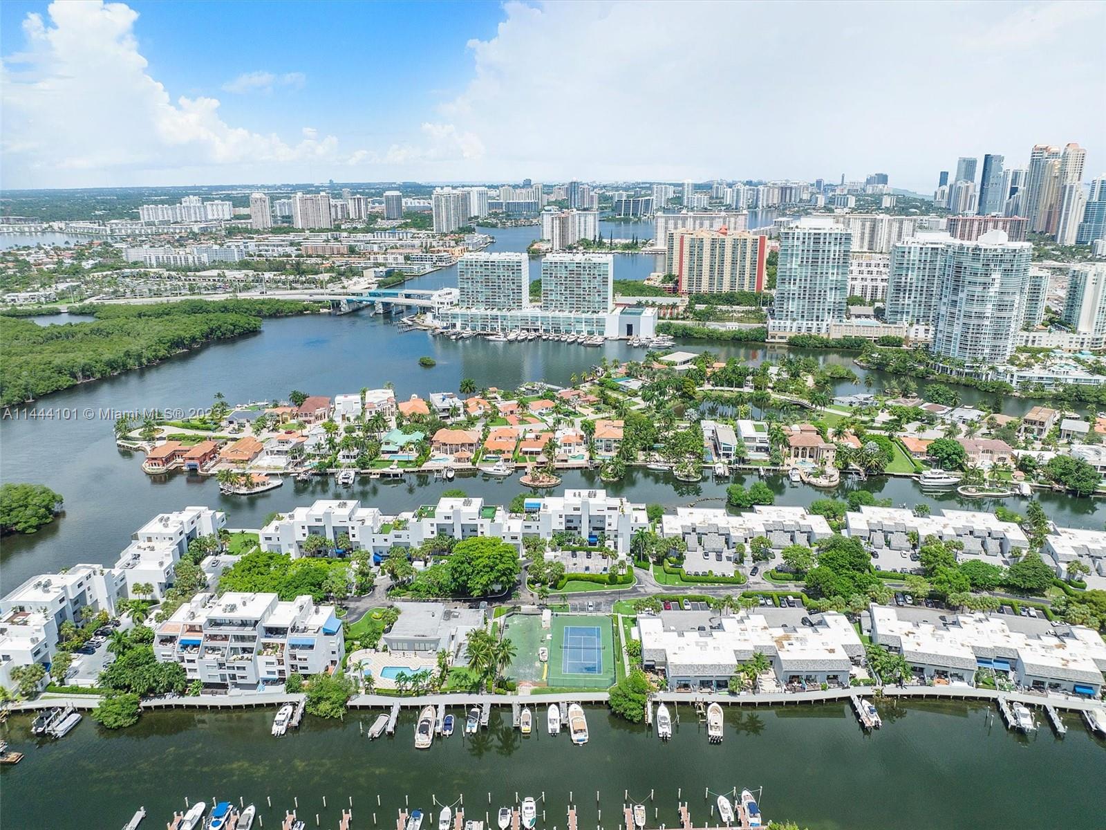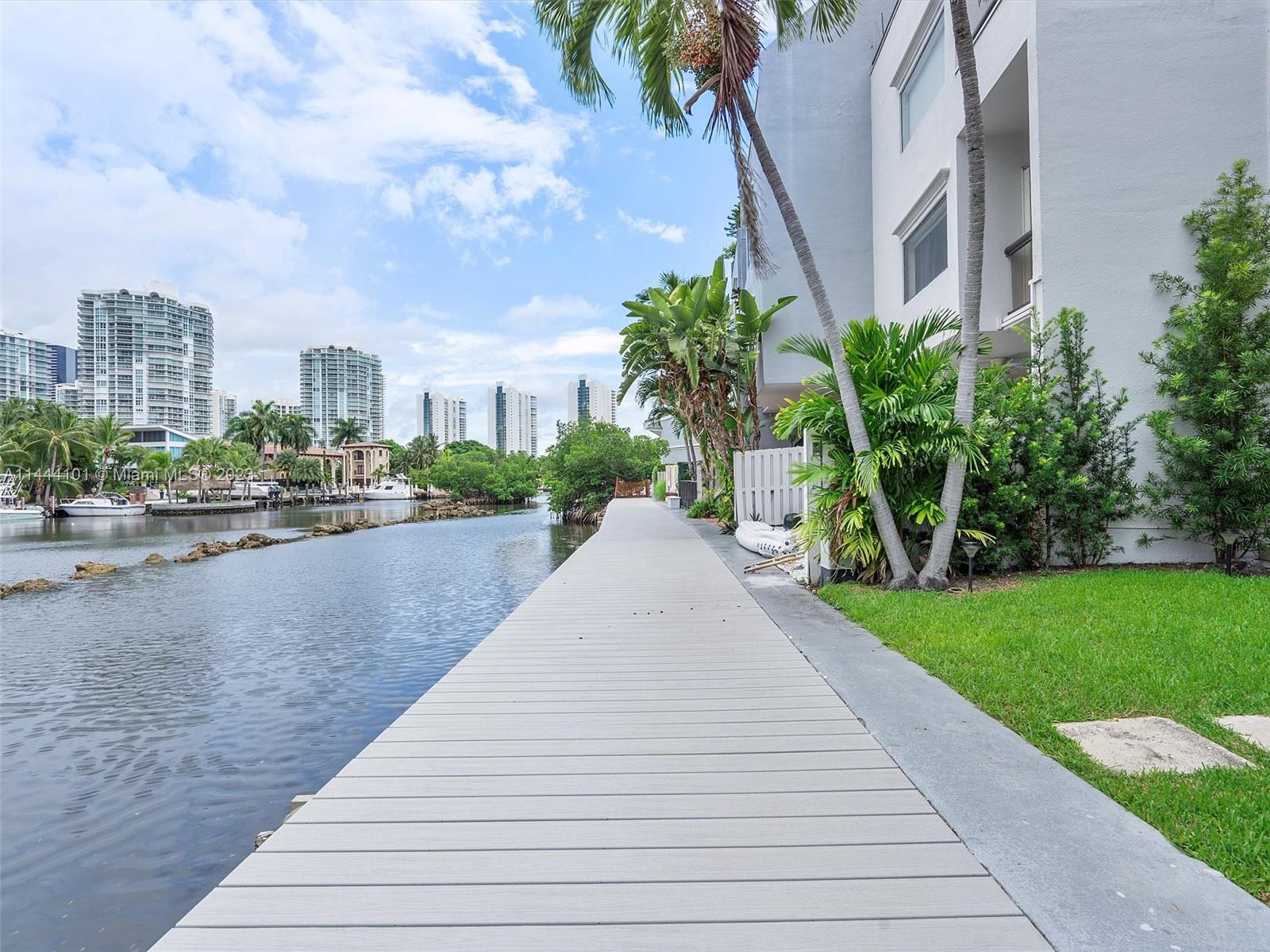 *MOVE IN READY* Welcome Home to Poinciana Island Yacht & Racquet Club. This hidden gem is located across the street from the Beach in Sunny Isles. Immerse yourself in the delights of this updated townhouse residence on the waterfront, featuring an open floor plan. The first floor consists of a renovated kitchen adorned with elegant white gloss cabinets, stainless steel appliances, and exquisite quartz countertops. The living room boasts luxurious 32 x 32 porcelain tile floors, high-impact doors and windows, along with a guest bathroom and bedroom which opens up to a private patio. Bonus, a new boardwalk has just been completed for your enjoyment. Amenities include: tennis courts, 2 pools, gym, racquetball, and basketball courts.