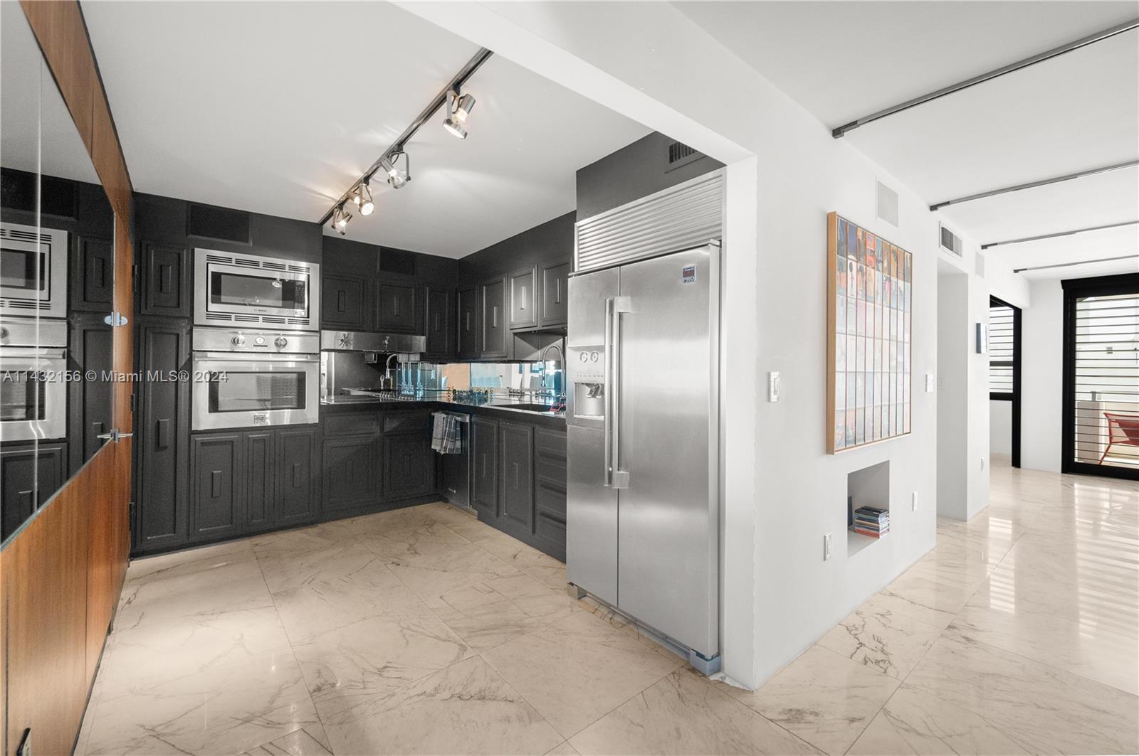 LOBBY reopened and it is STUNNING. Come see this sleek, chic and just BEAUTIFUL unit with glamorous white marble floors, great natural light, dramatic black kitchen & walnut wall panels. Plantation shutters throughout hint at the views beyond. Ample storage, impact windows/doors adjustable closets, barrier free showers. Second bedroom has sliding panels that open into the living room & create privacy when needed. SPECIAL ASSESSMENT PAID IN FULL. Pet friendly building with great amenities. Building updated with new hallways, elevators, fire sprinkler, EV charging, gym ++. Building collects reserves. Matterport 3D tour.