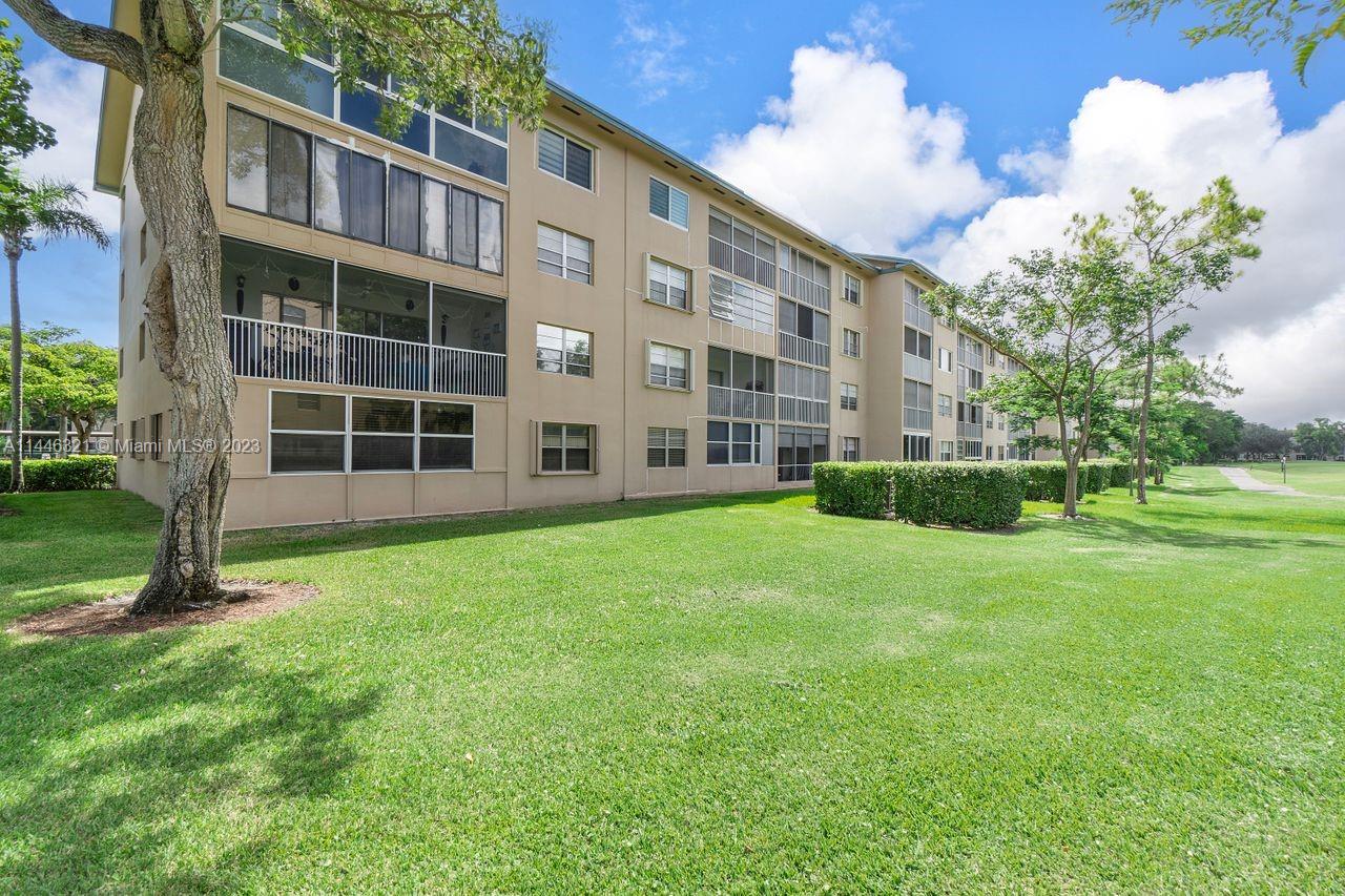 Welcome Home! This condo is located on the 1st FLOOR offers scenic views of a golf course & water, Convenient parking space in front of the unit. This bright & spacious 2bd/2ba condo features NEW IMPACT Windows and Sliding Doors, washer & dryer in the unit. The kitchen has been fully renovated, includes wood cabinets, granite countertops, S/S appliances, giving it a modern & stylish look. Tile flooring throughout. Spacious bedrooms, walk-in closet, primary bedroom, completely renovated bathrooms. The enclosed patio offers beautiful golf and water views. Century Village is a 55+ manned gated community designed to provide a variety of amenities and a convenient and enjoyable lifestyle for its residents.